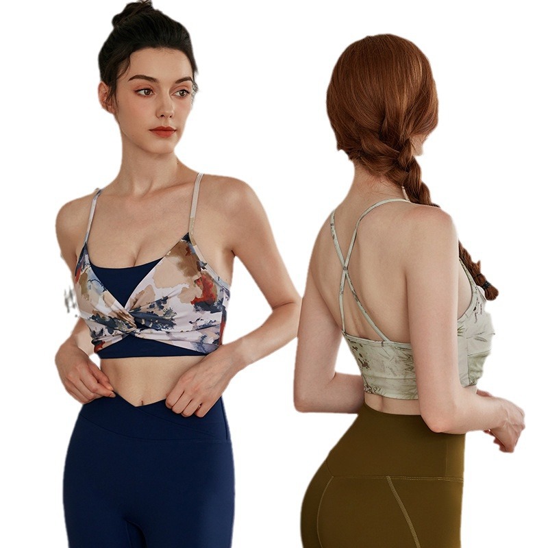 国风爆款健身跑步瑜伽背心挂脖运动内衣高强度瑜伽上衣背心女