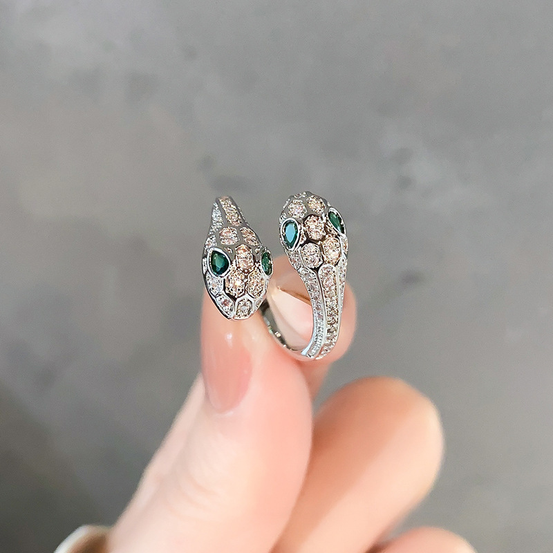 蛇形戒指女小众设计高级感食指戒新款祖母绿个性手饰开口指环