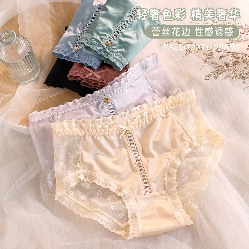 精美奢华缎面蕾丝性感花边舒适透气紫杉醇底裆甜美少女三角底裤