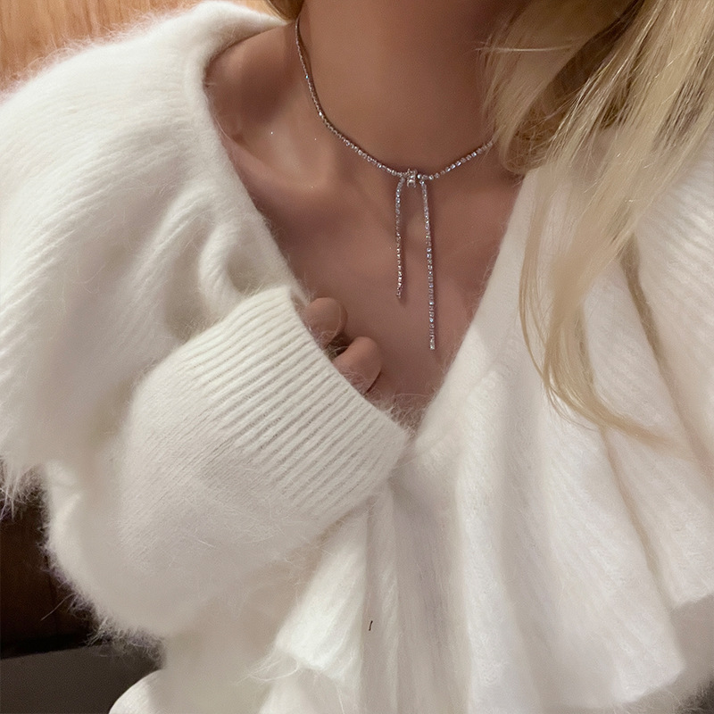 闪钻锆石蝴蝶结项链女小众高级设计感气质轻奢短款颈链锁骨链配饰
