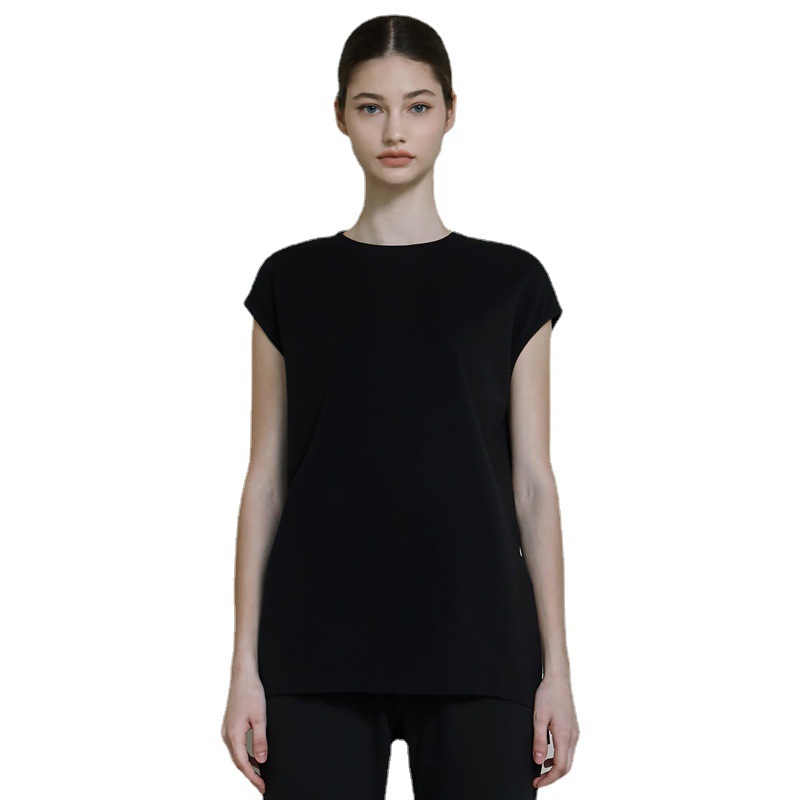 2025春夏新款瑜伽服无袖背心T恤圆领上衣宽松开叉运动健身罩衫ins
