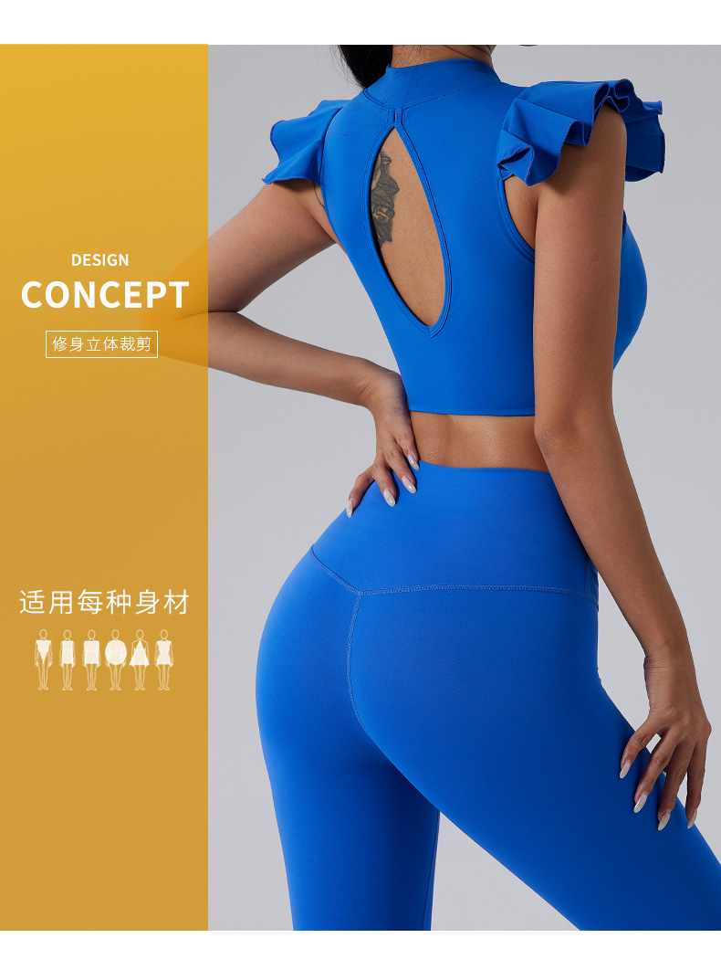 高级裸感荷叶边瑜伽上衣女显瘦美背运动跑步瑜伽健身文胸背心