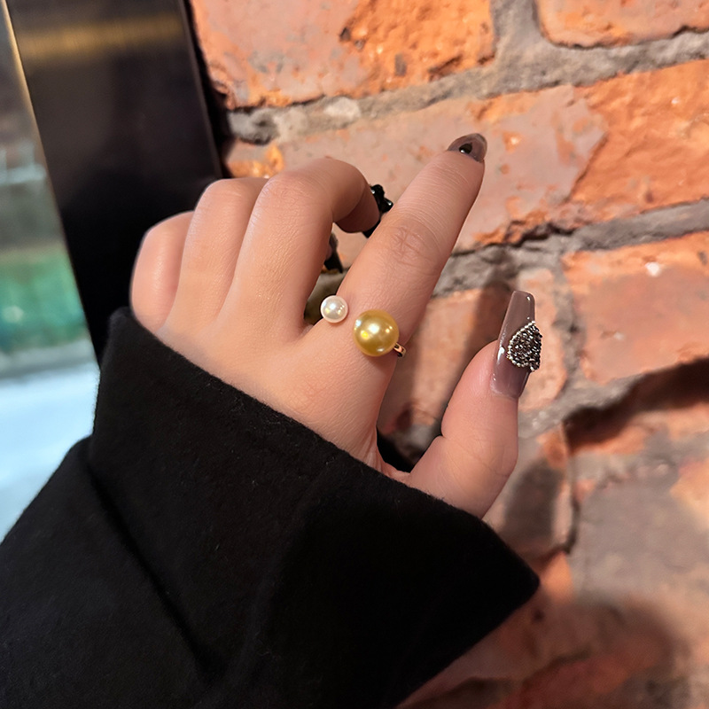 气质简约新款撞色珍珠戒指女个性百搭开口可调节食指戒小众配饰潮
