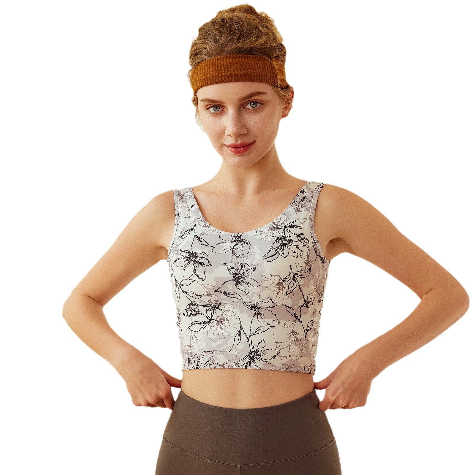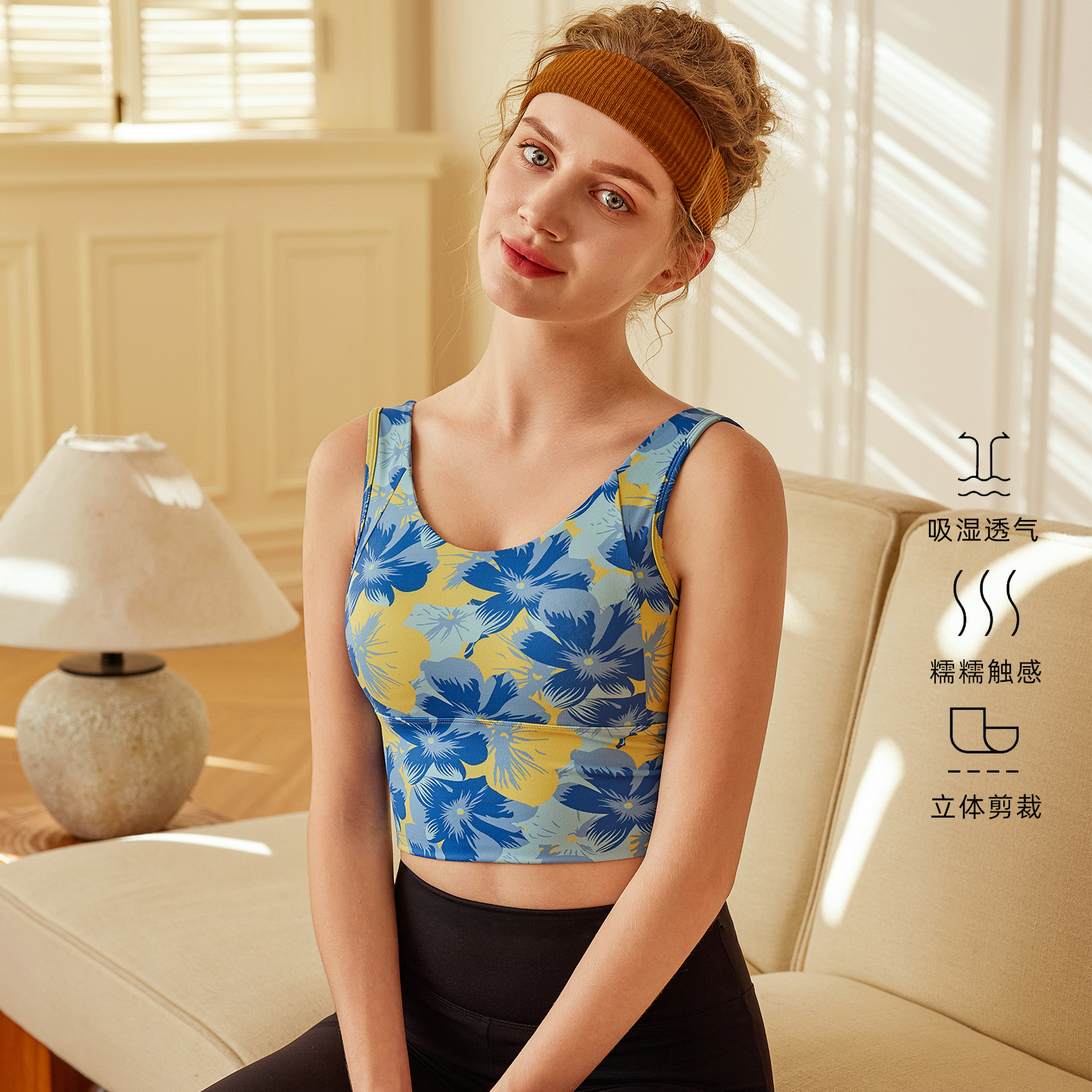 桃花朵朵瑜伽服2025新款高级感普拉提瑜伽健身运动上衣背心固定杯