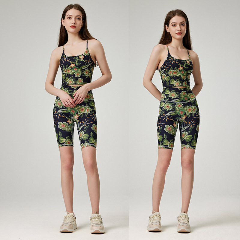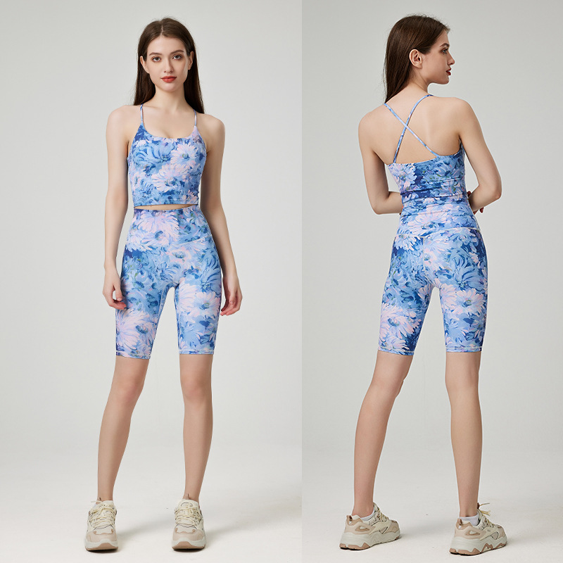 浪漫系瑜伽服套装夏季运动内衣女防震高强度健身速干背心瑜伽裤女