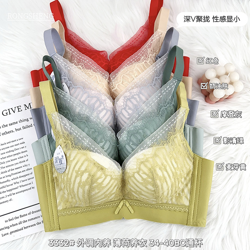 内衣女无钢圈五排扣调整型性感蕾丝聚拢文胸舒适透气侧收副乳胸罩