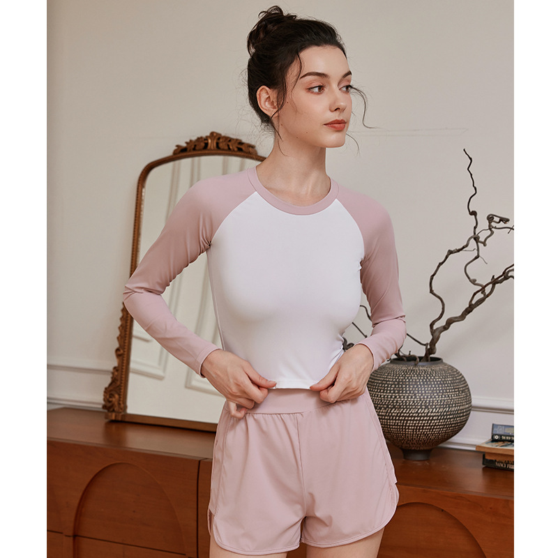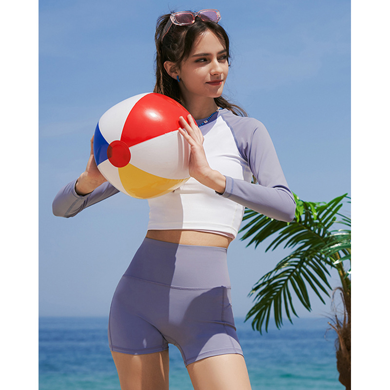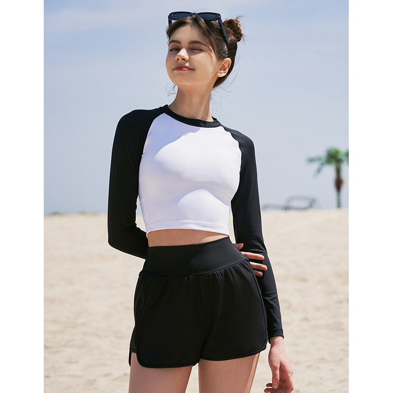 日韩泳衣女保守防晒长袖聚拢运动温泉女分体平角显瘦外贸健身服女