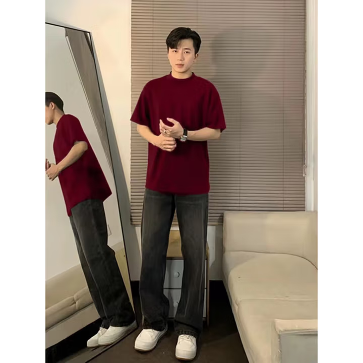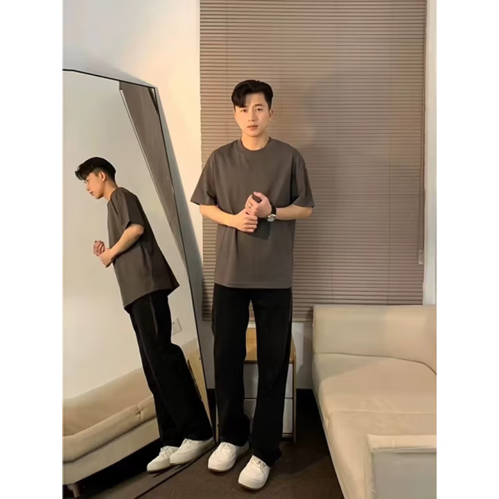 260g纯棉短袖t恤男夏季美式纯色正肩半袖体恤打底衫上衣