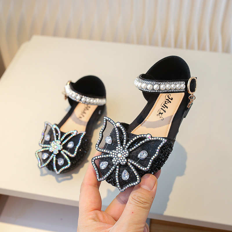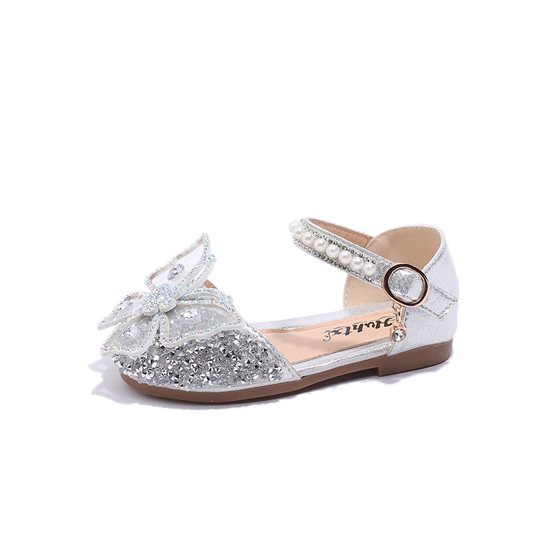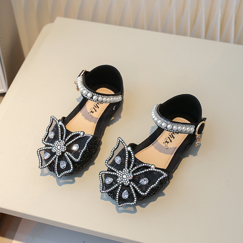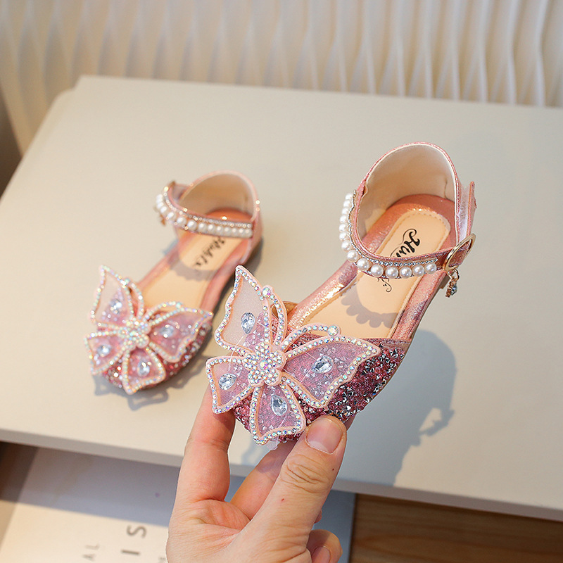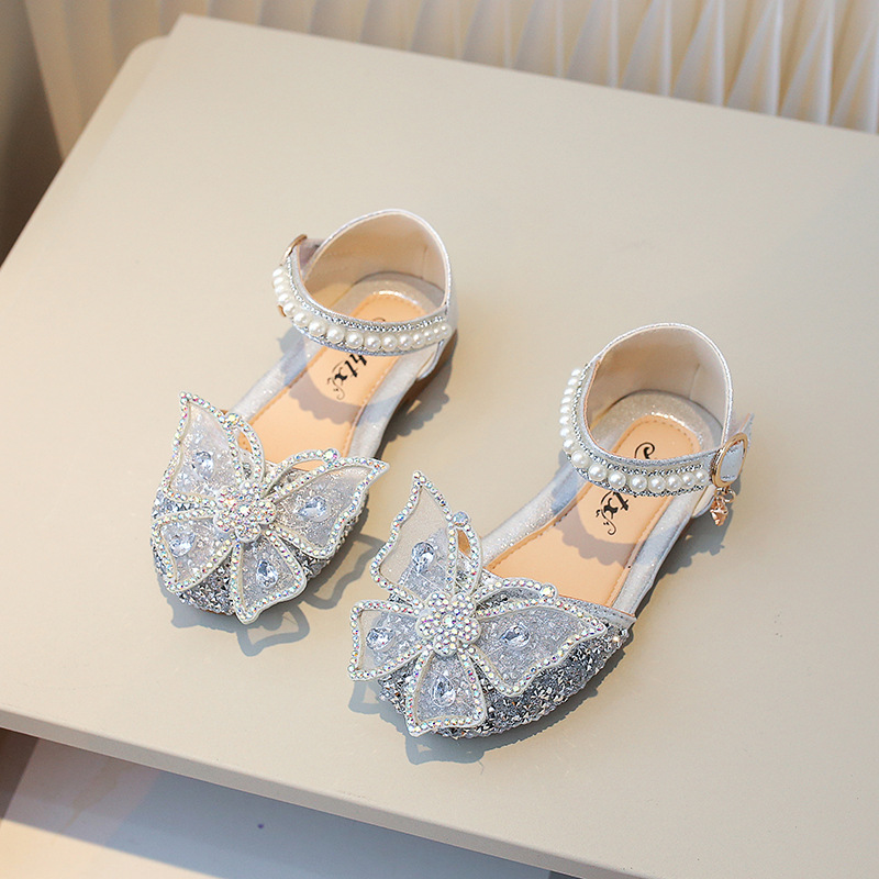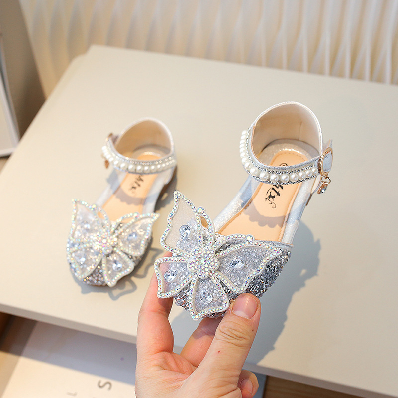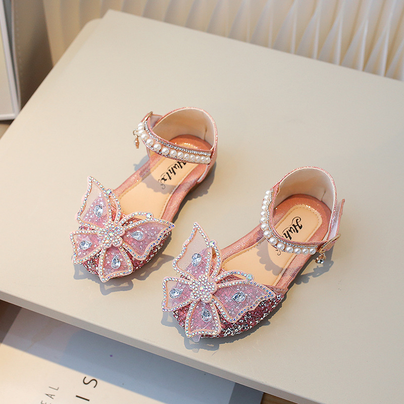 女童公主鞋2025夏季新款时尚软底百搭水晶鞋宝宝洋气蝴蝶结小凉鞋