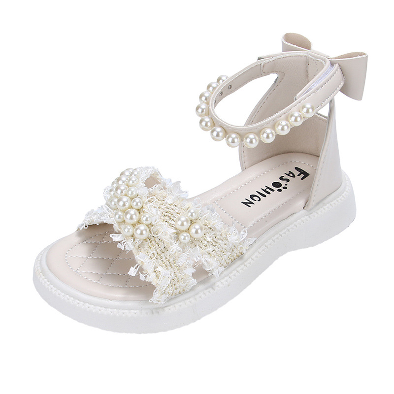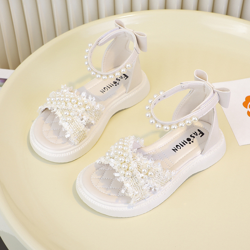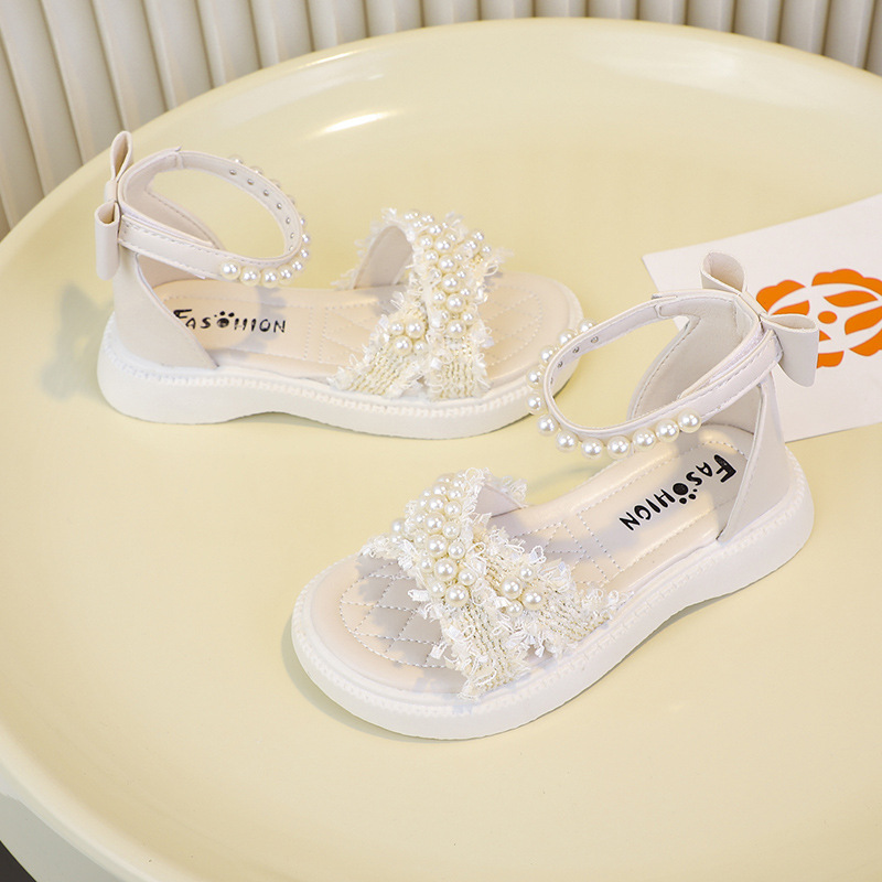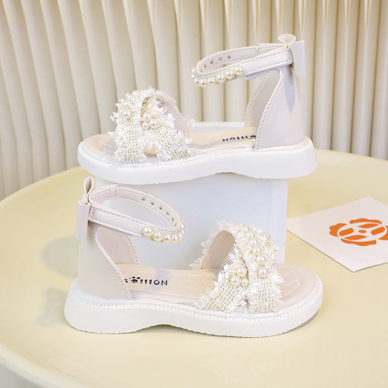 2025儿童鞋女童凉鞋沙滩鞋珍珠包露趾包后跟潮白搭舒适3-10岁童鞋