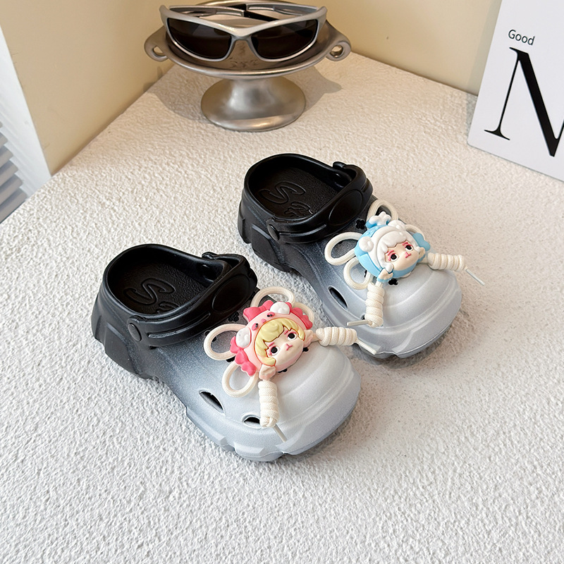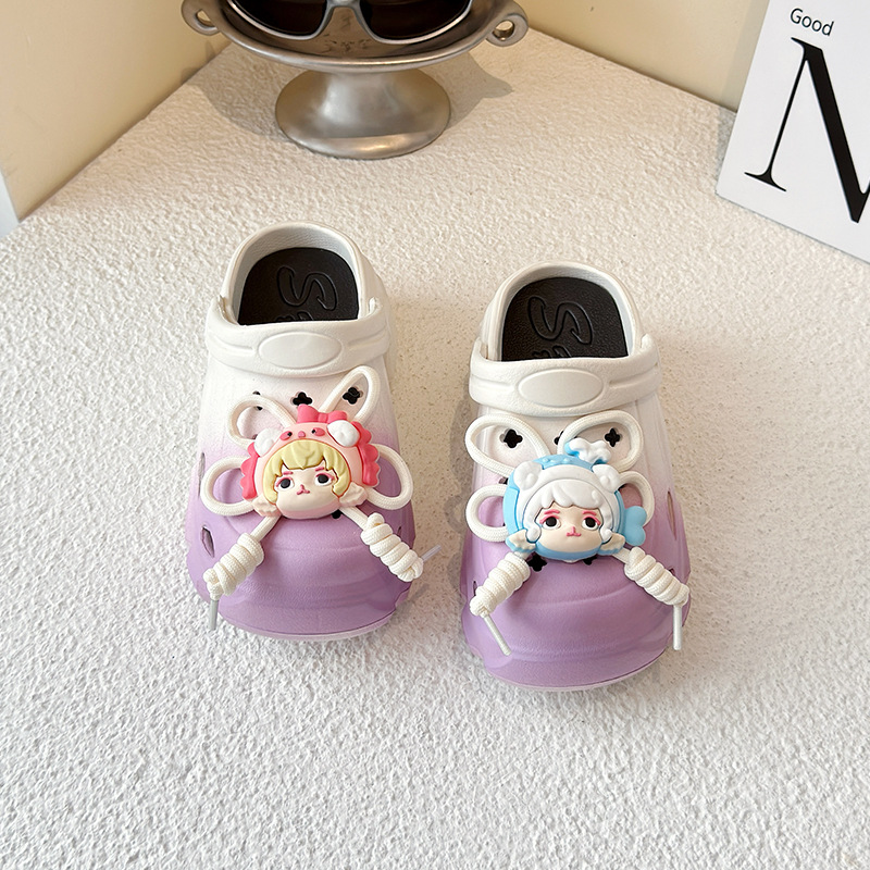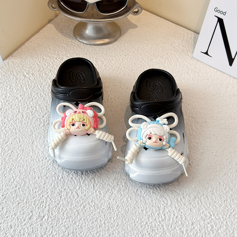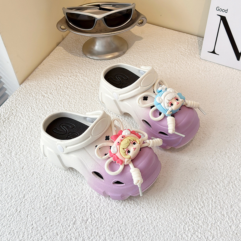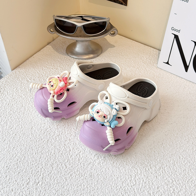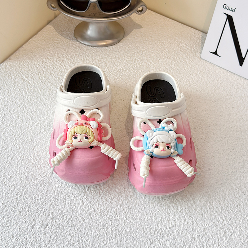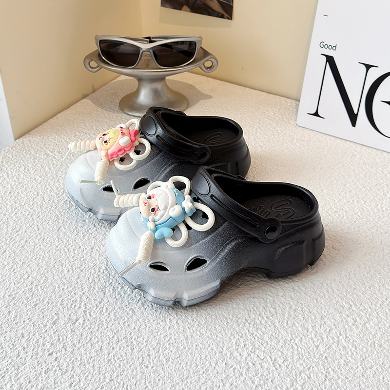 可爱百搭男女童亲子拖鞋新款饼干兔子洞洞鞋软底防滑包头凉洋气拖