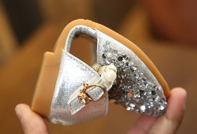 儿童小皮鞋女童表演鞋银色公主鞋春季闪亮女童鞋女孩水晶亮片鞋子