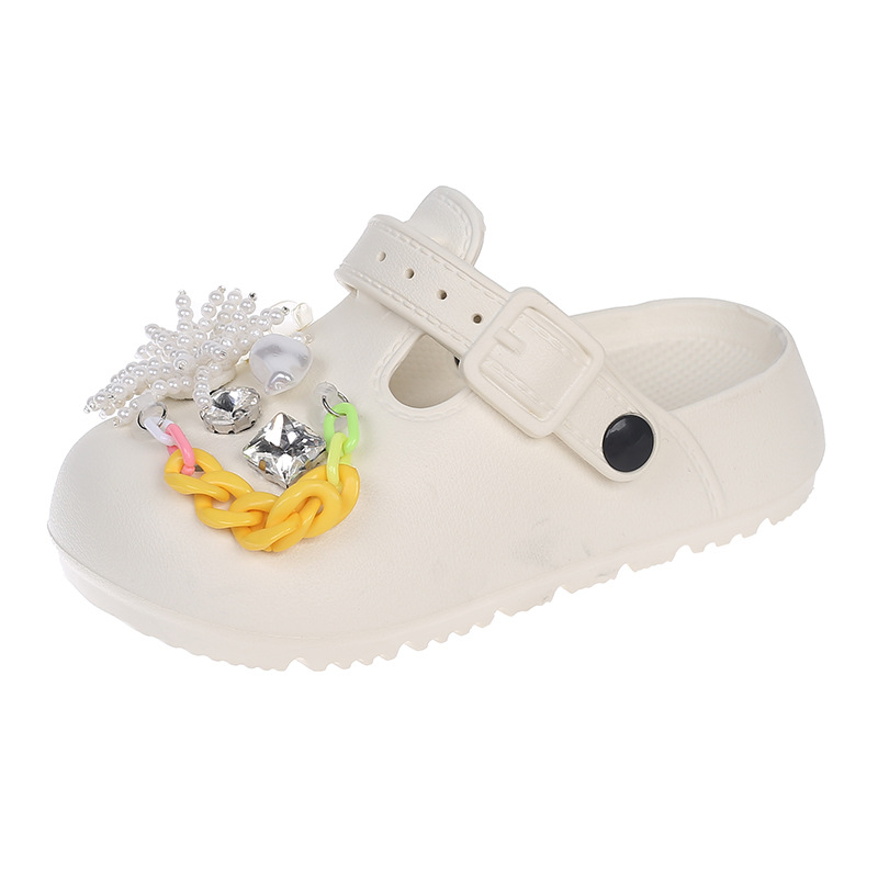 2025春季高品质镶钻椭圆金属亚克力链条扣创意彩色亚克力时尚拖鞋