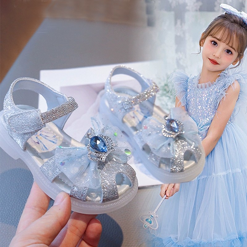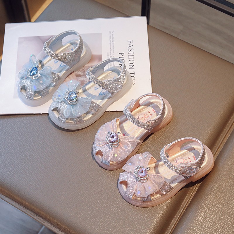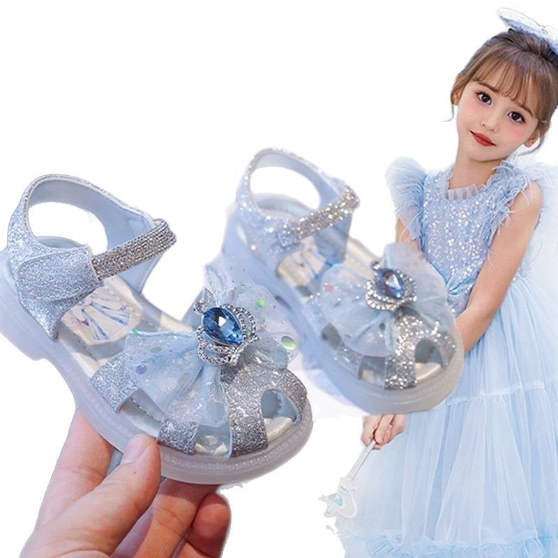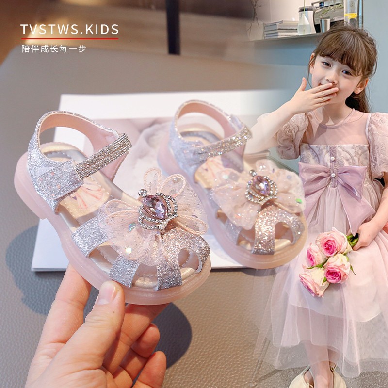 女童公主凉鞋2025年夏款儿童小女孩中大儿童水晶鞋蝴蝶结清新凉鞋