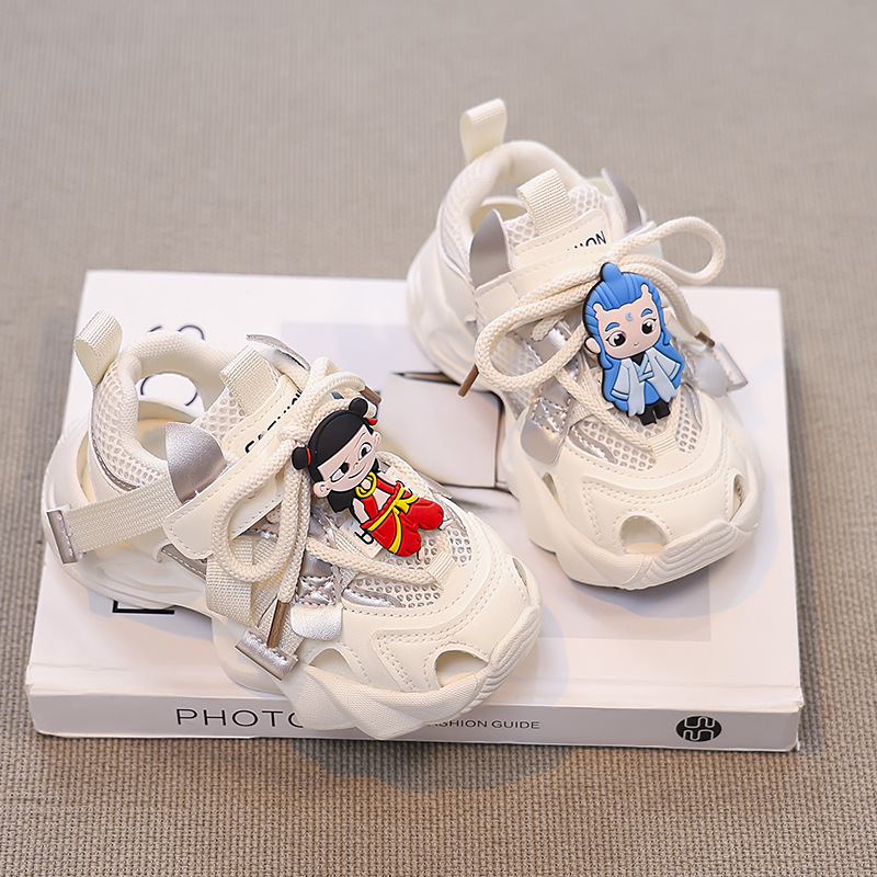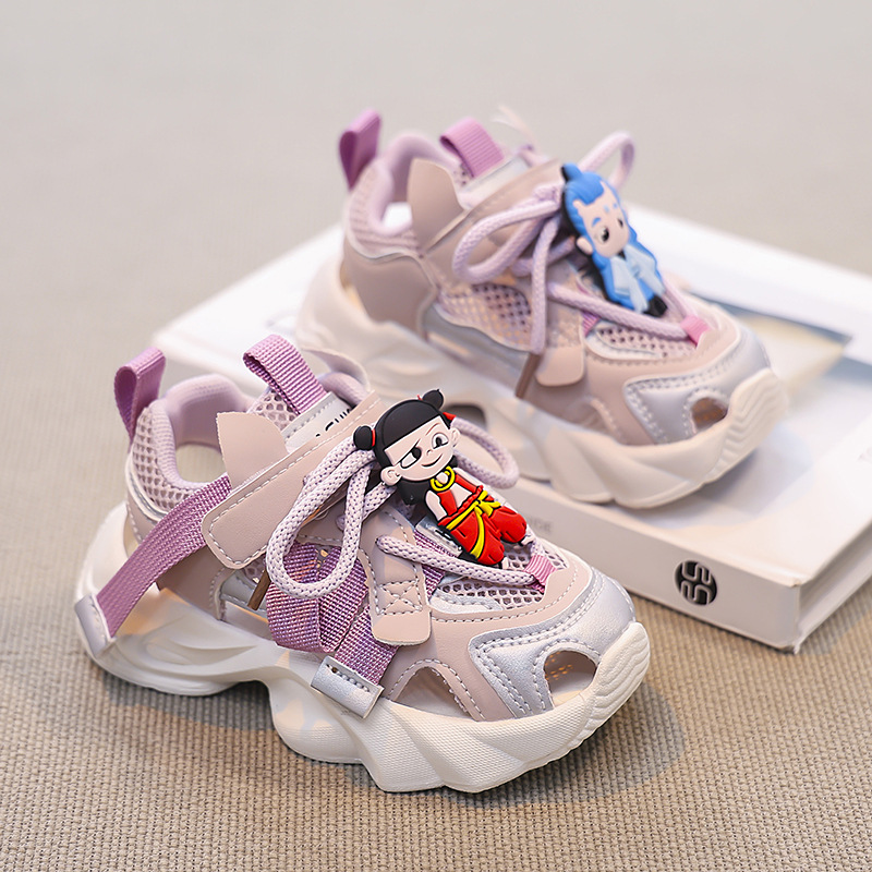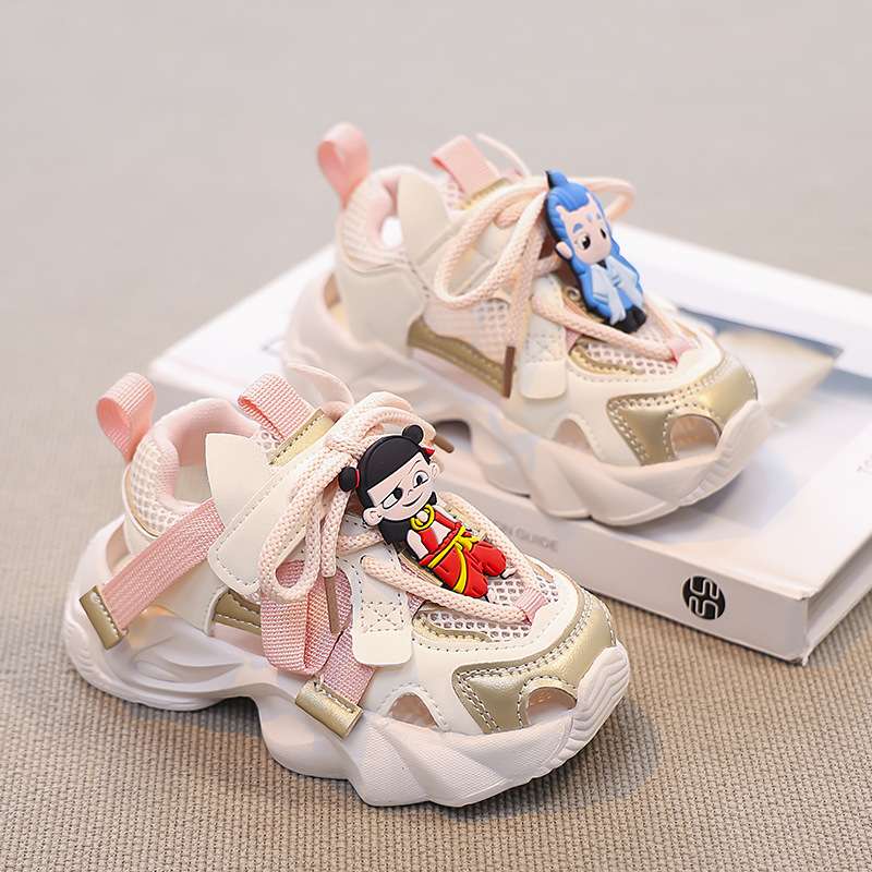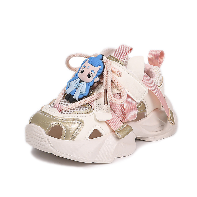 库洛米女童凉鞋2025新款夏季儿童时尚运动网鞋女孩镂空网面小白鞋