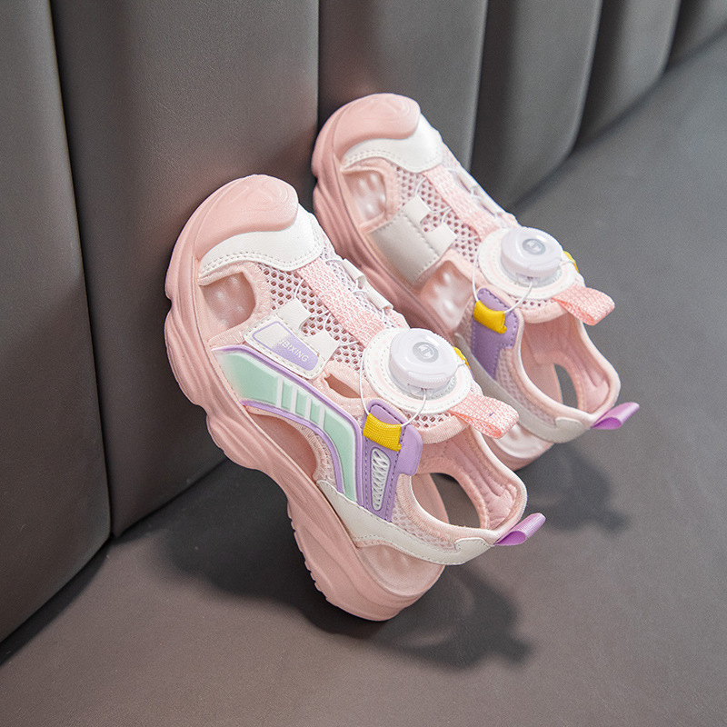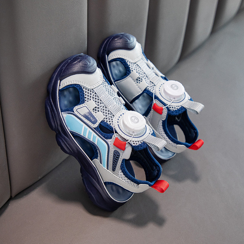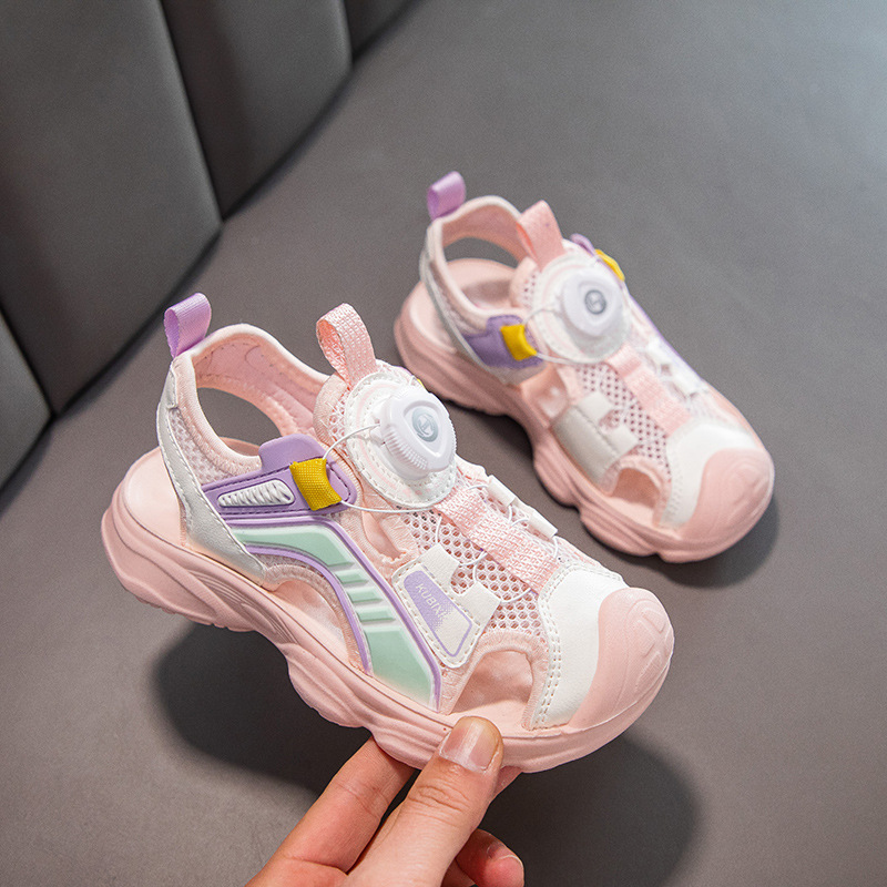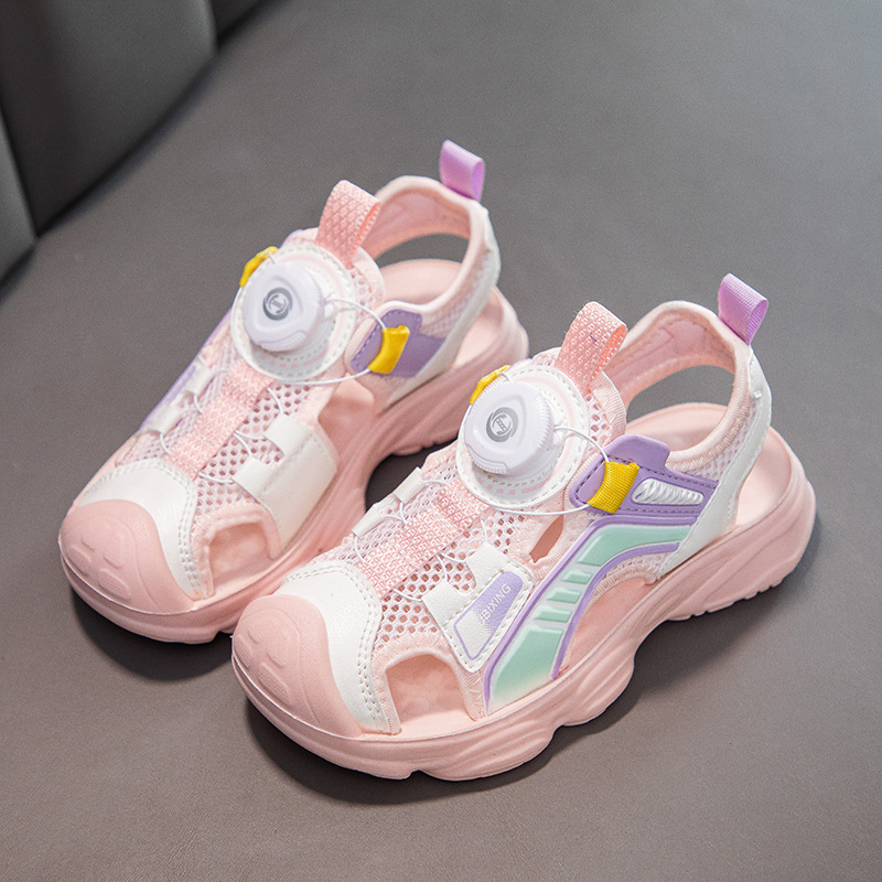 儿童包头凉鞋2025夏季新款旋转纽扣软底防滑时尚百搭中大童休闲鞋