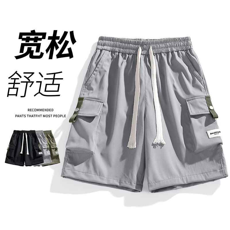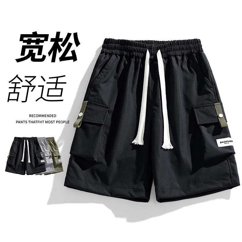 夏季薄款黑色速干工装休闲短裤宽松大码多口袋五分裤青年中裤潮牌