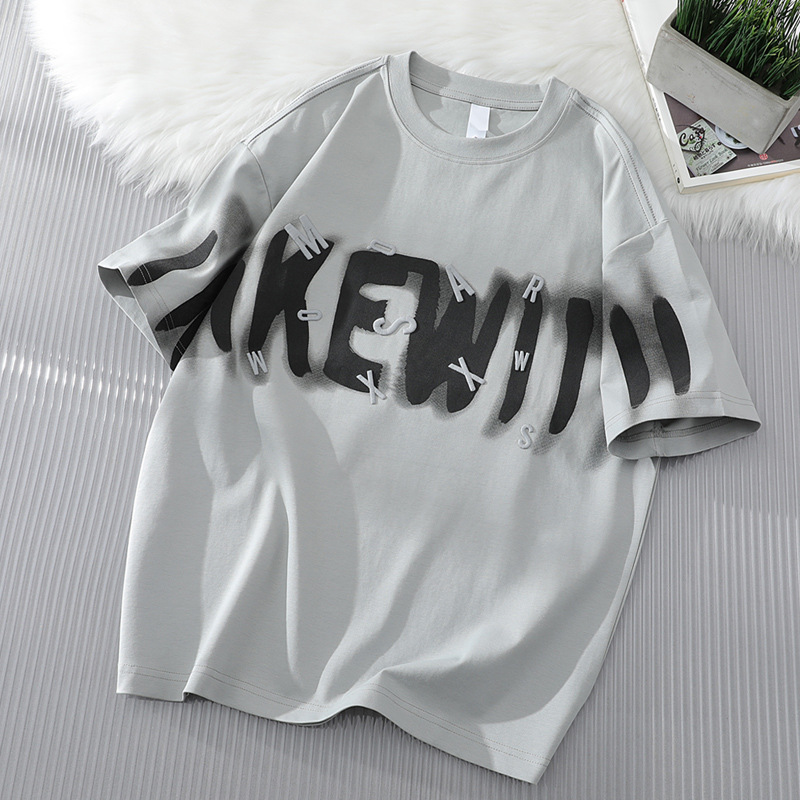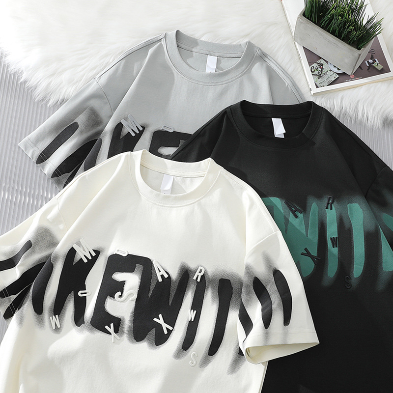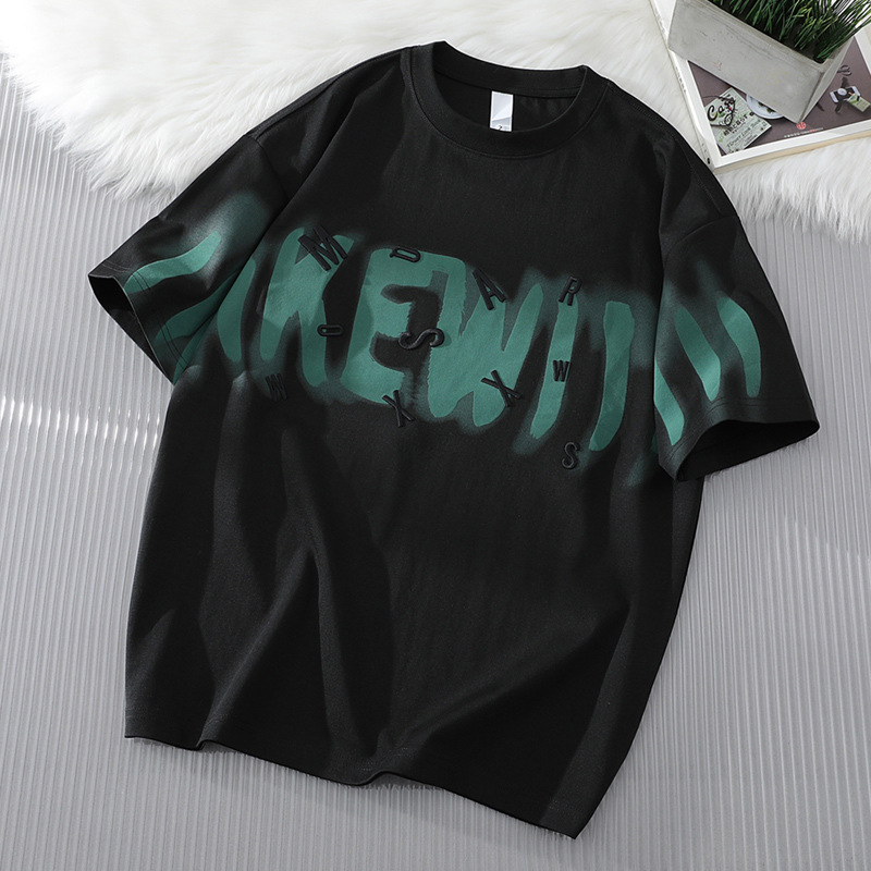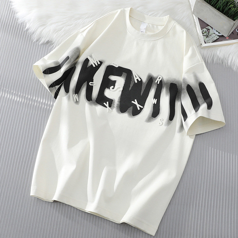 2025夏季新款纯棉短袖美式潮牌字母涂鸦设计感时尚痞帅宽松百搭衣