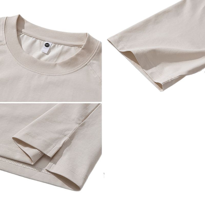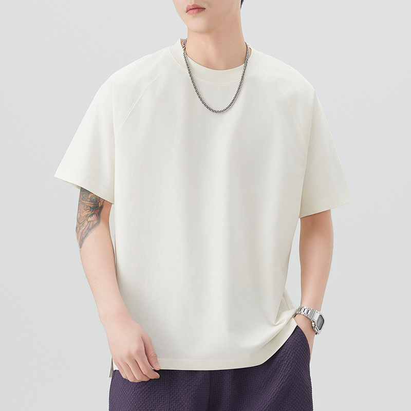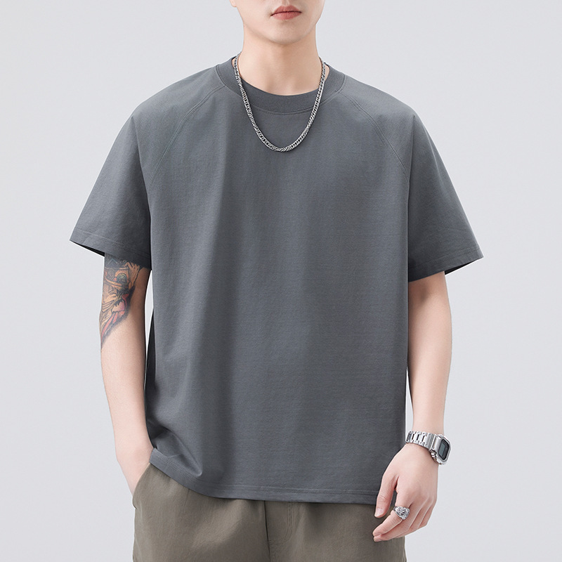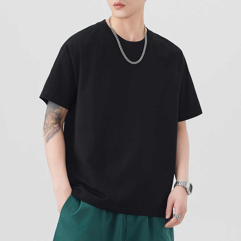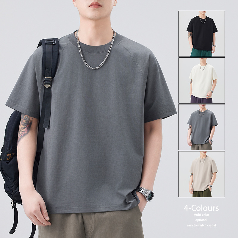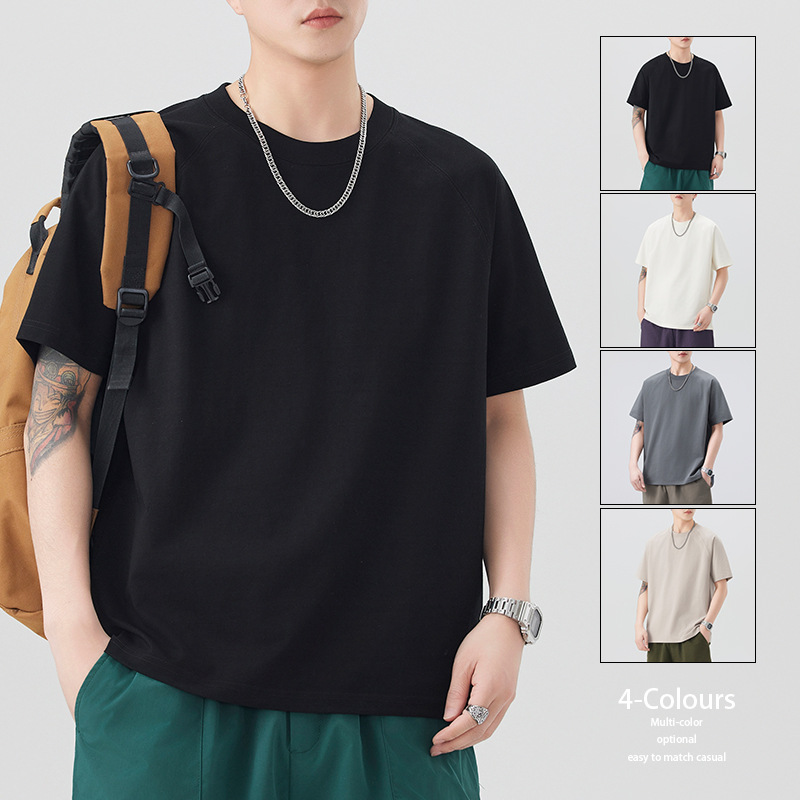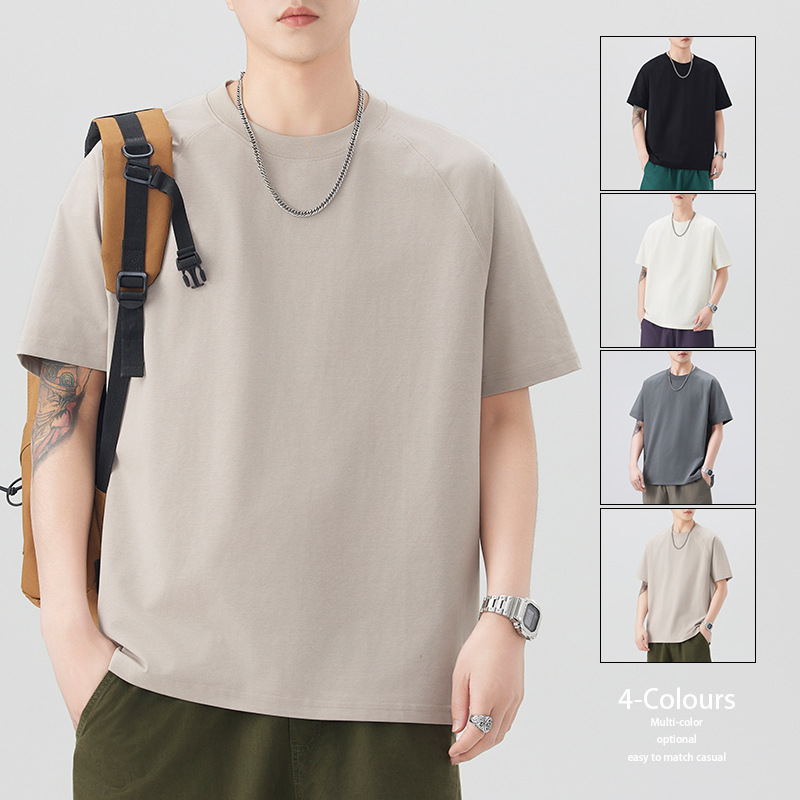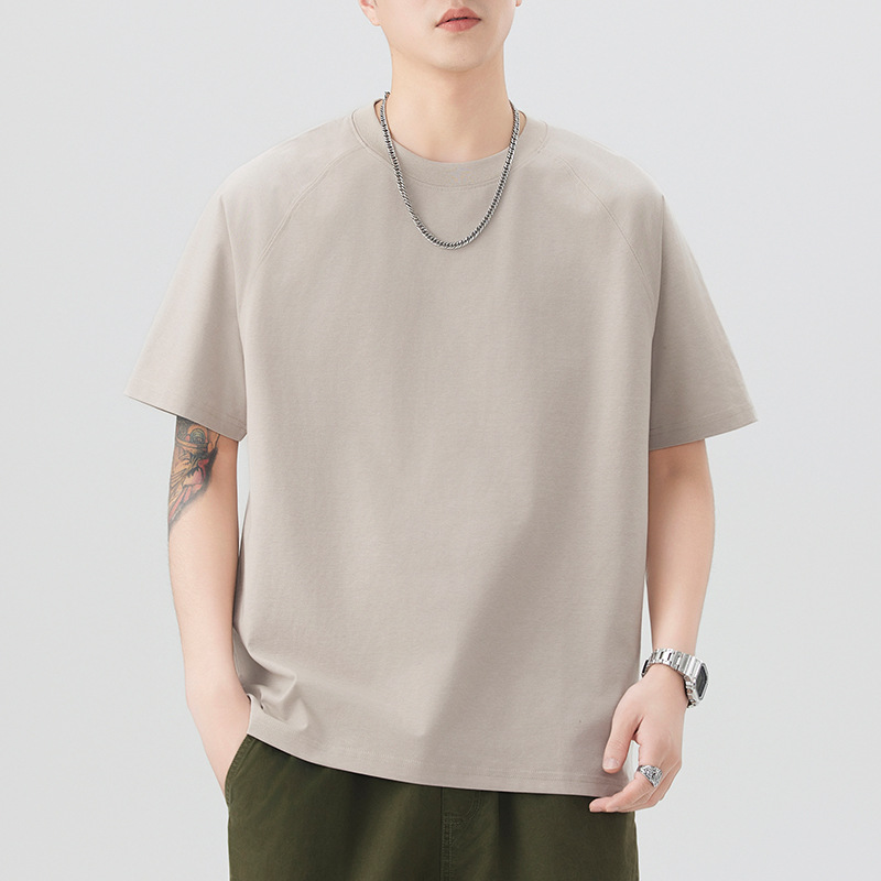 圆领短袖T恤男黑色咖色白色军卡其棕色青春流行亚麻宽松型