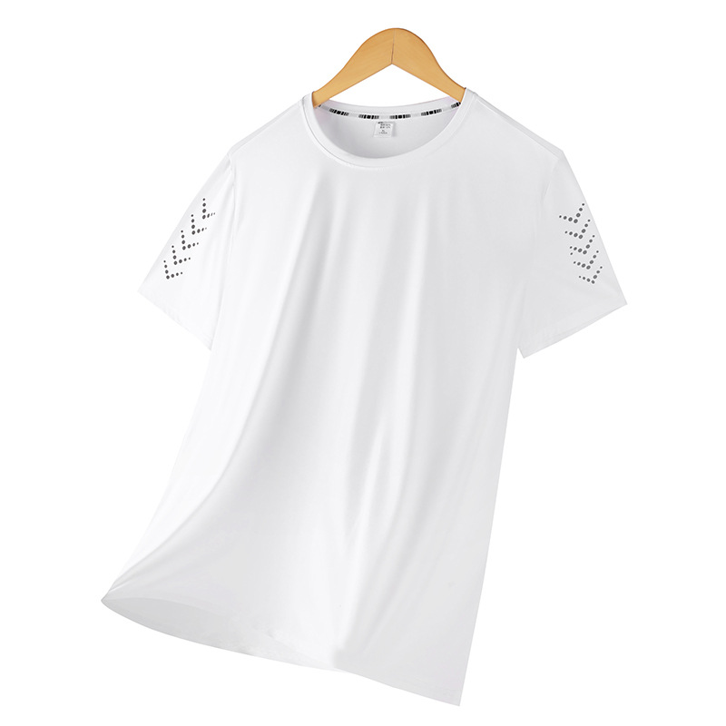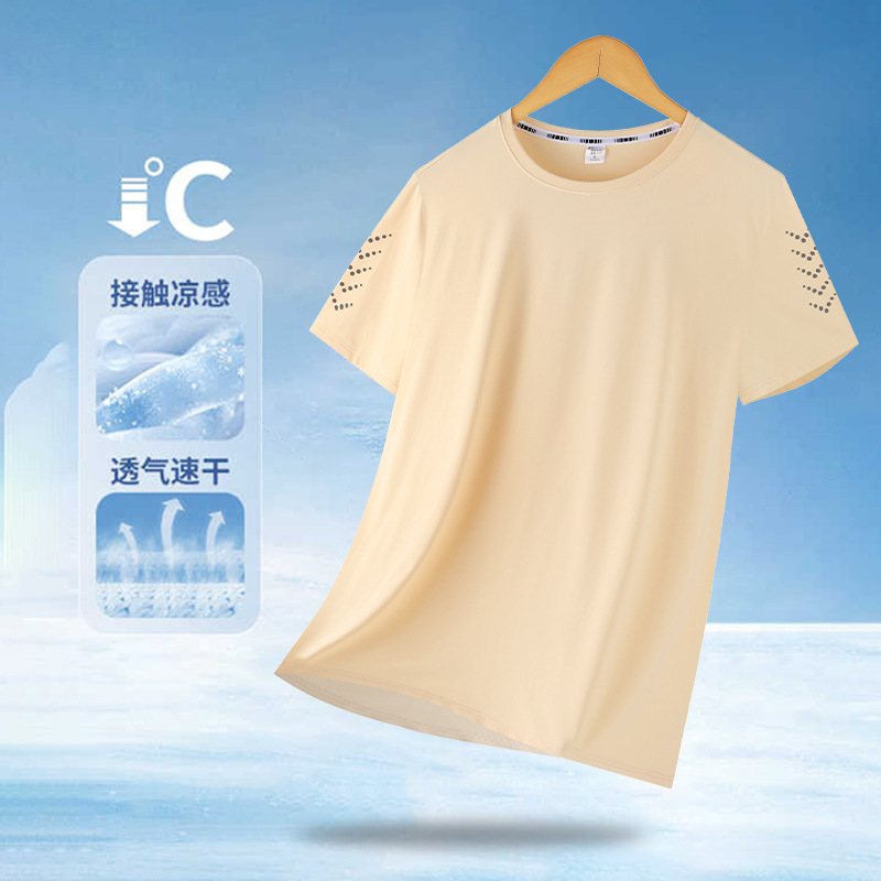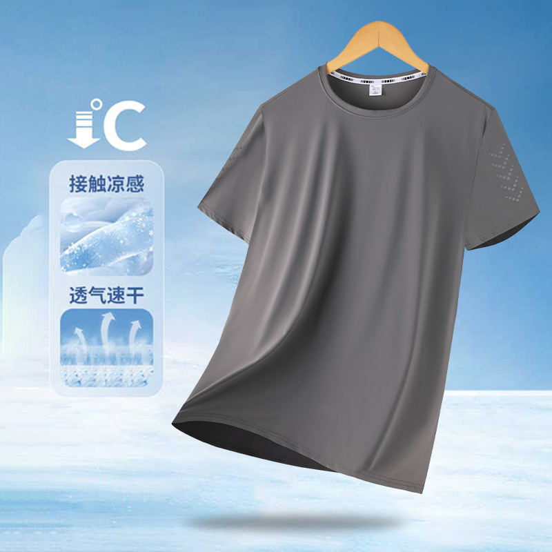 冰丝男士t恤短袖夏季冰感薄款大码休闲白色速干上衣服半袖圆领男