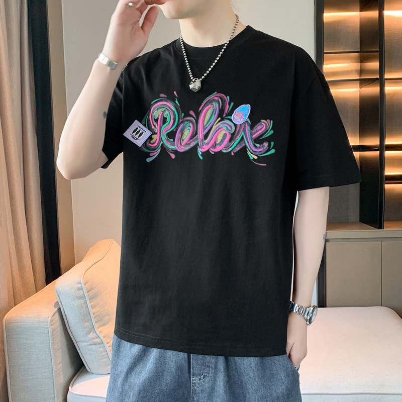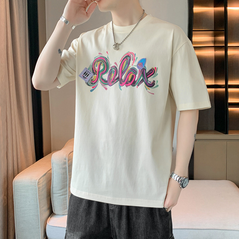 短袖t恤男生新款夏季港风青少年潮牌印花宽松休闲半袖上衣服