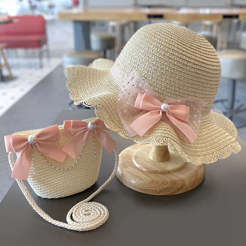 夏季女童大檐遮阳草帽夏款公主出游沙滩防晒女宝宝太阳渔夫帽夏包