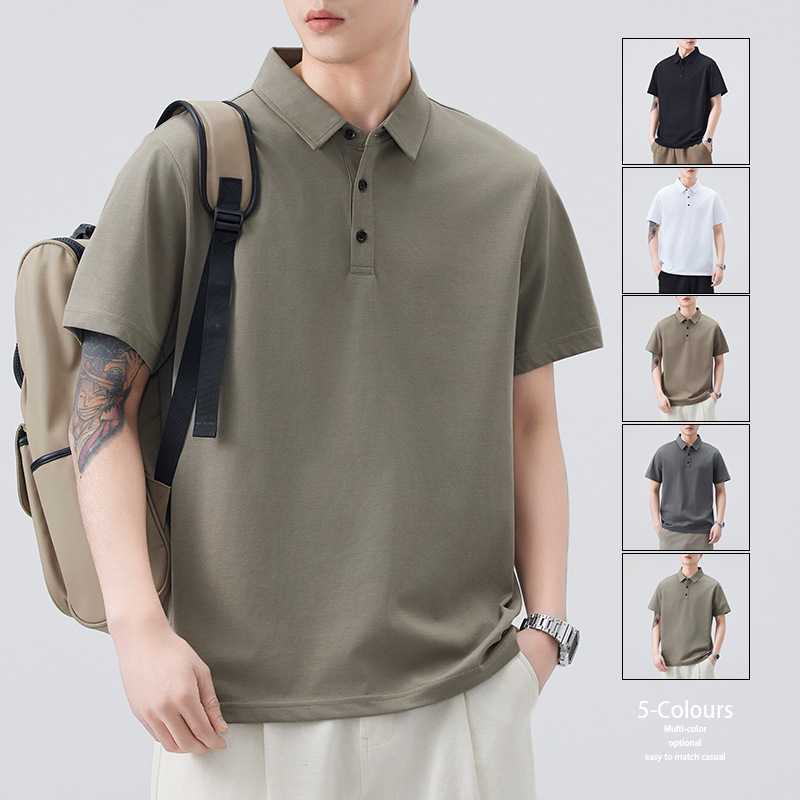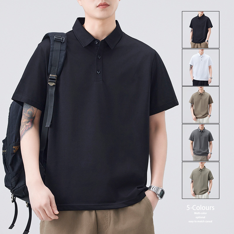 夏季无痕冰丝日系polo衫男士高端商务休闲抗皱宽松百搭翻领t恤男