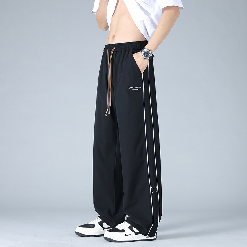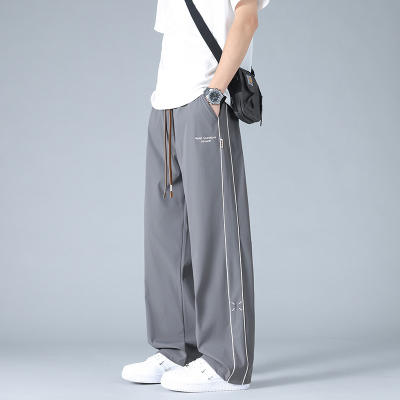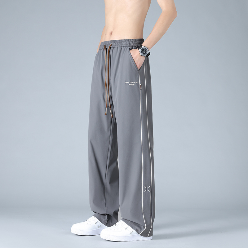 2025春夏季新款冰丝休闲裤男士夏季薄款宽松大码运动裤直筒裤子