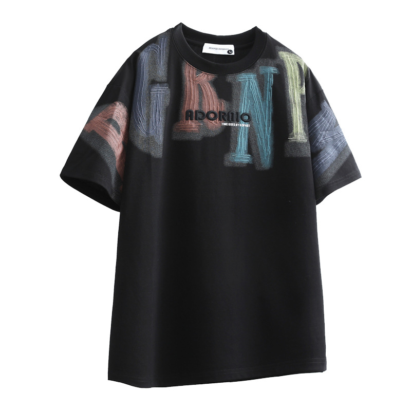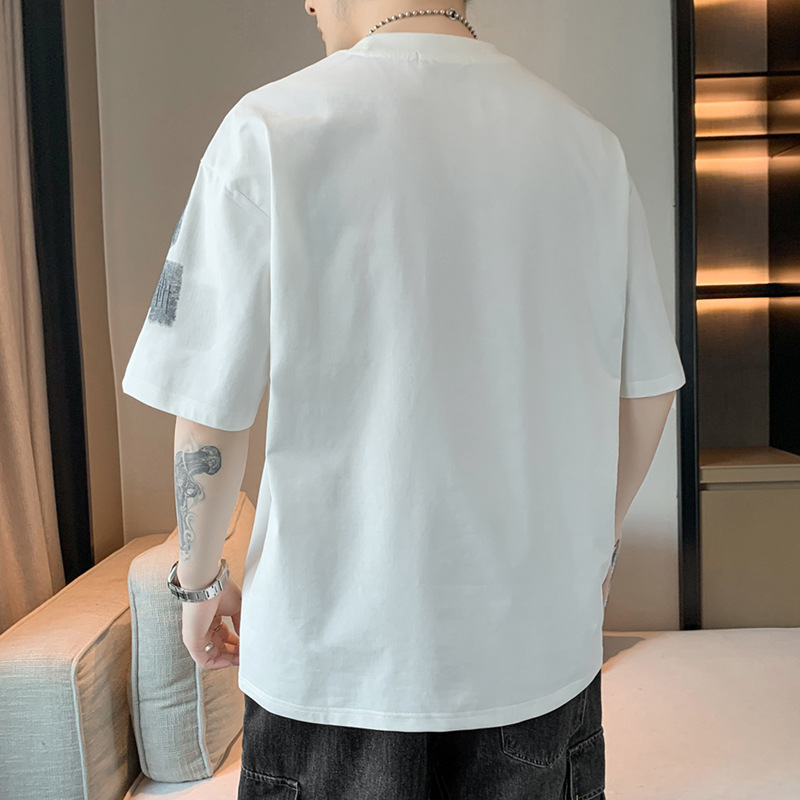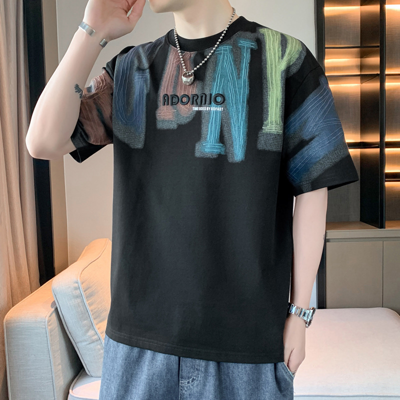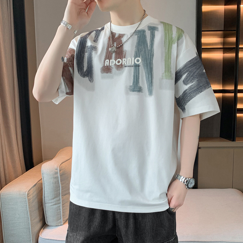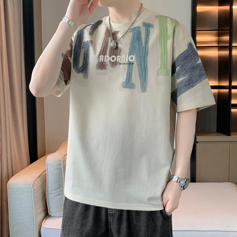 2025夏季新款男装短袖T恤韩版潮流短袖休闲港风印花圆领短袖男