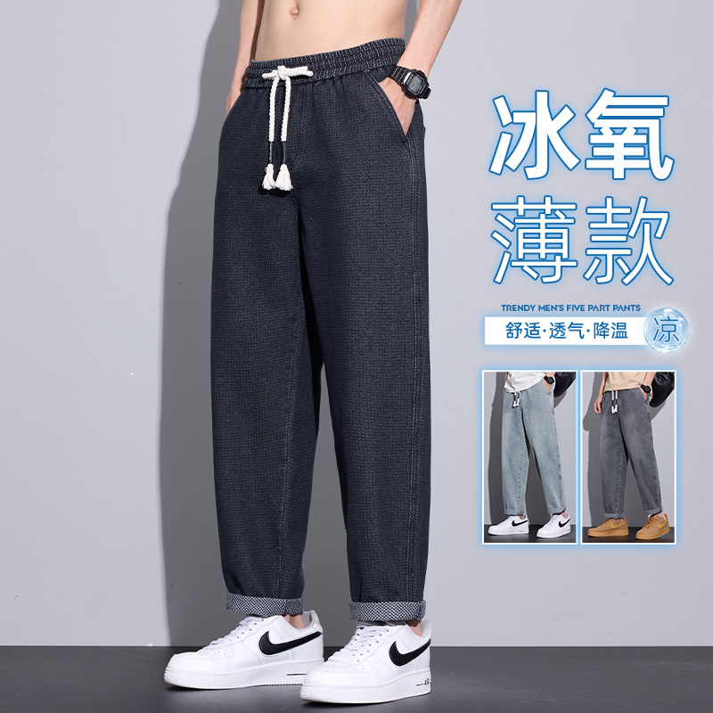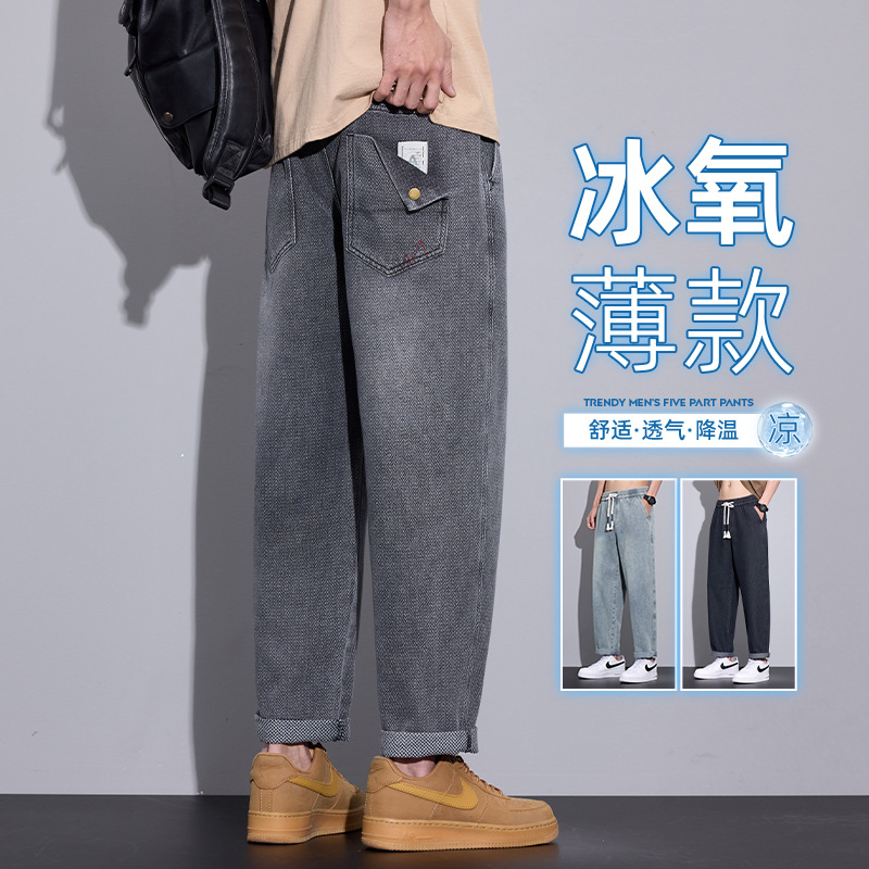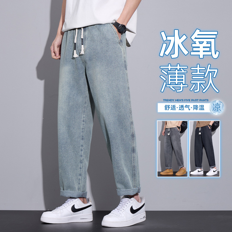 冰丝牛仔裤男士春季新款潮牌宽松直筒九分休闲长裤子2025春季新款