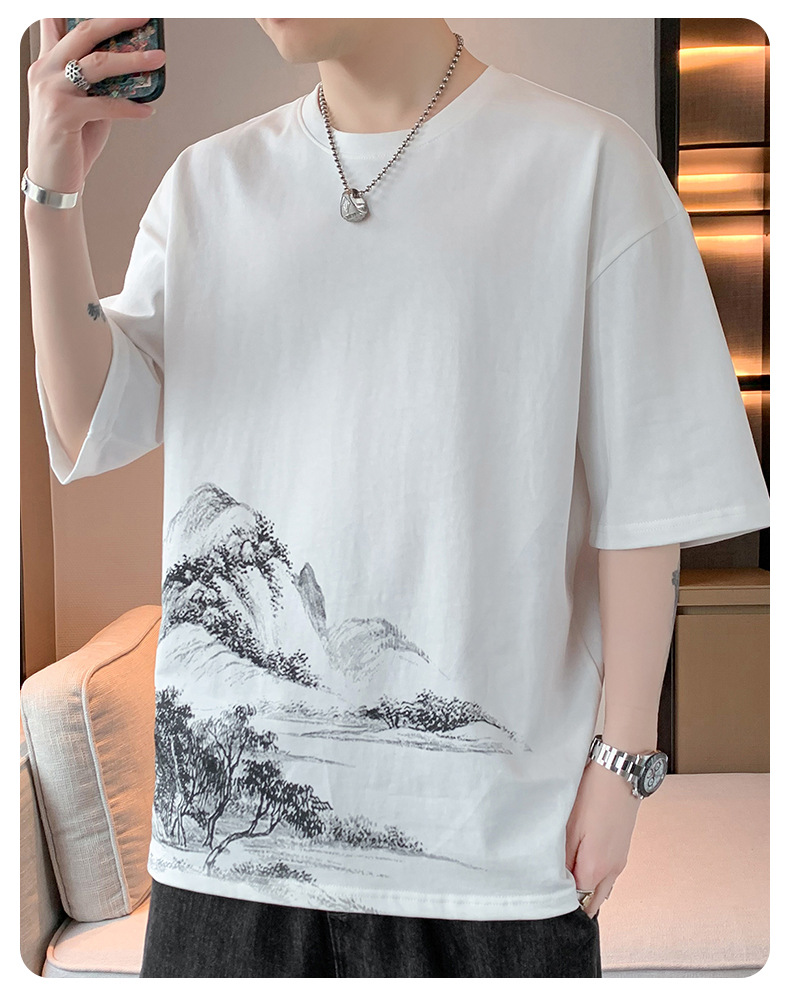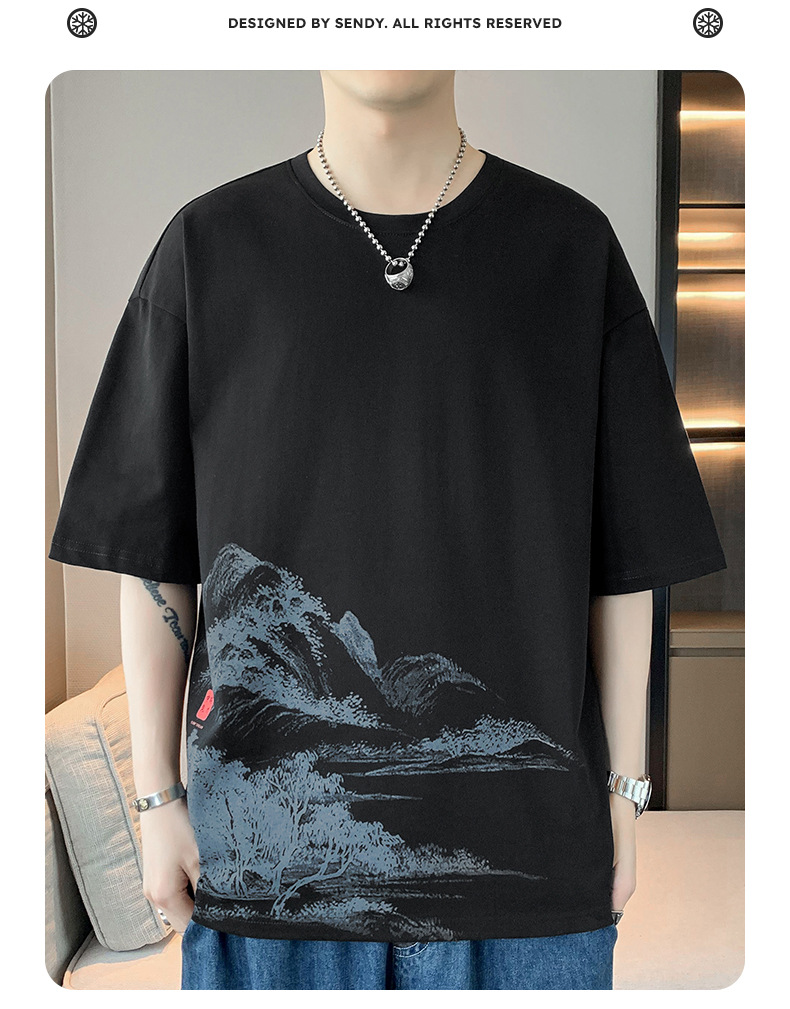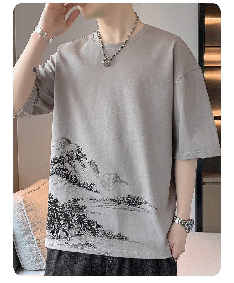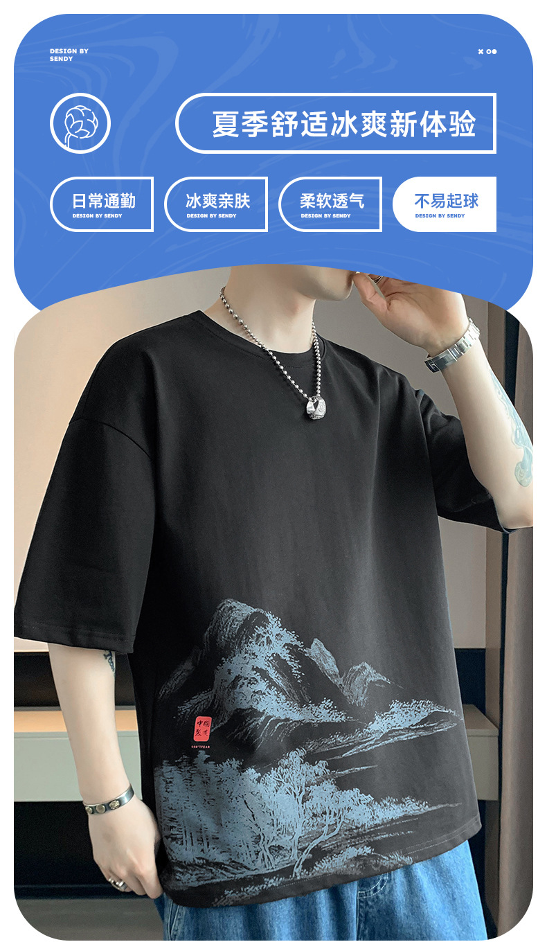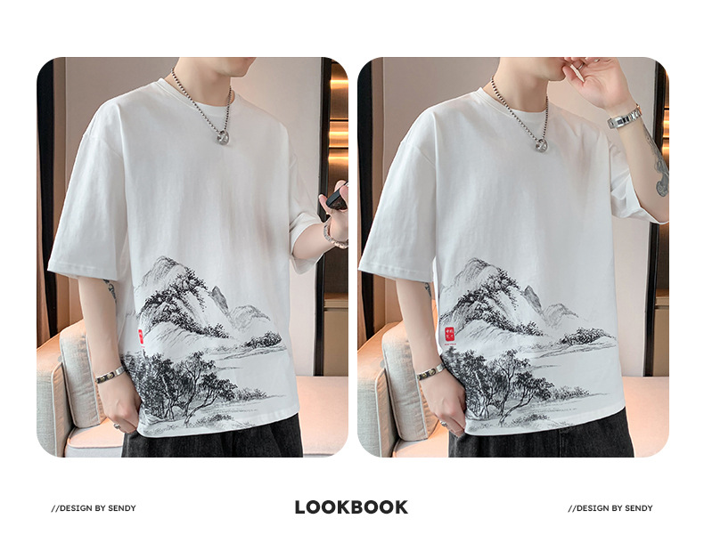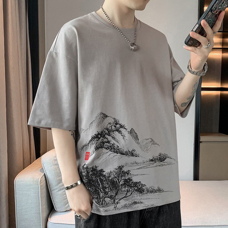 新中式短袖t恤男士夏季薄款潮牌宽松圆领棉复古半袖休闲上衣服潮