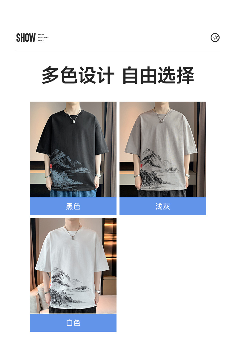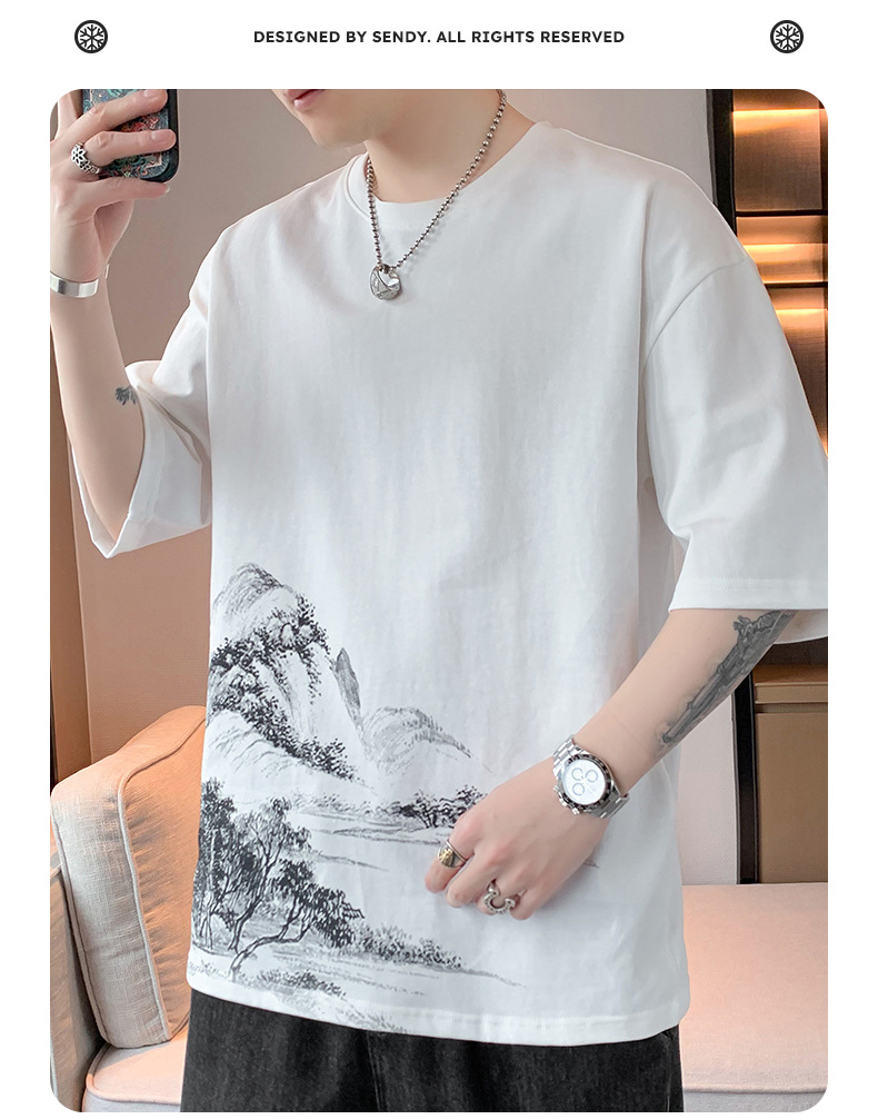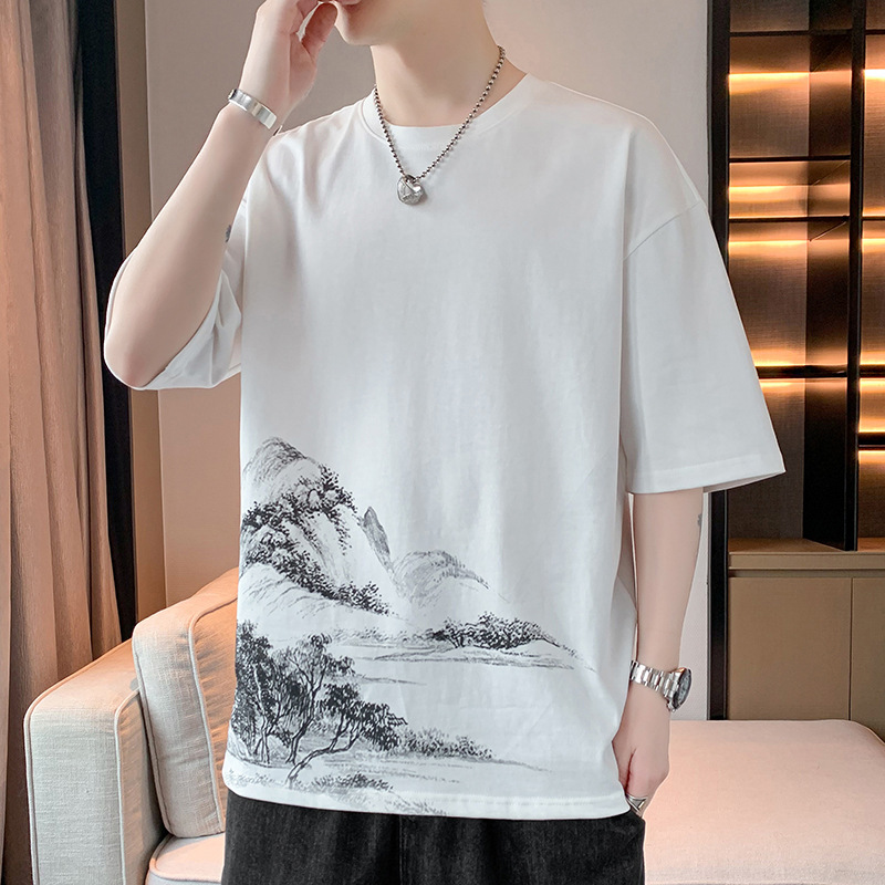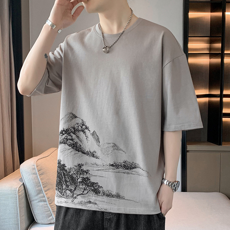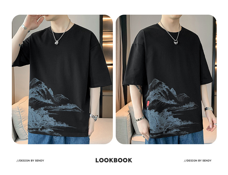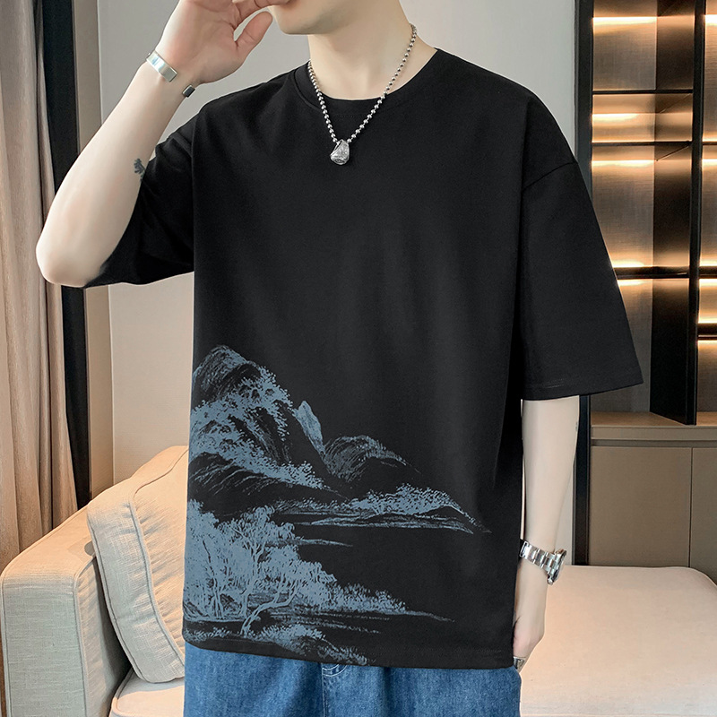 新中式短袖t恤男士夏季薄款潮牌宽松圆领棉复古半袖休闲上衣服潮