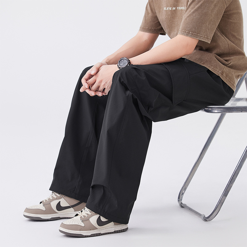 男装|立体袋工装阔腿裤2025春夏新品潮牌宽松高街格纹提花长裤