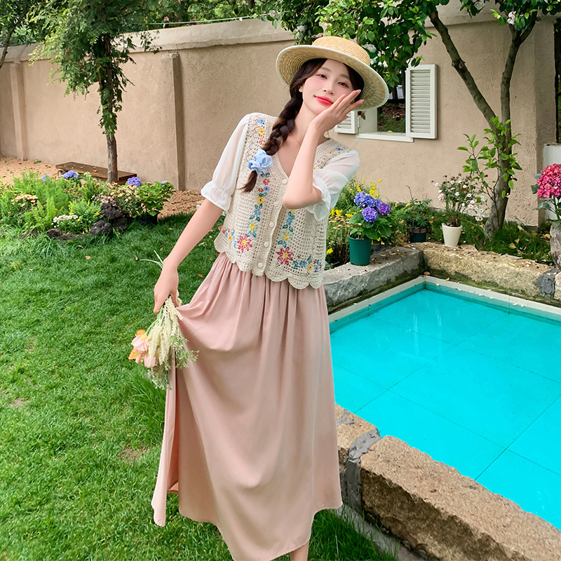 法式复古高级感时尚套装女夏季新款镂空蕾丝小衫半身裙两件套
