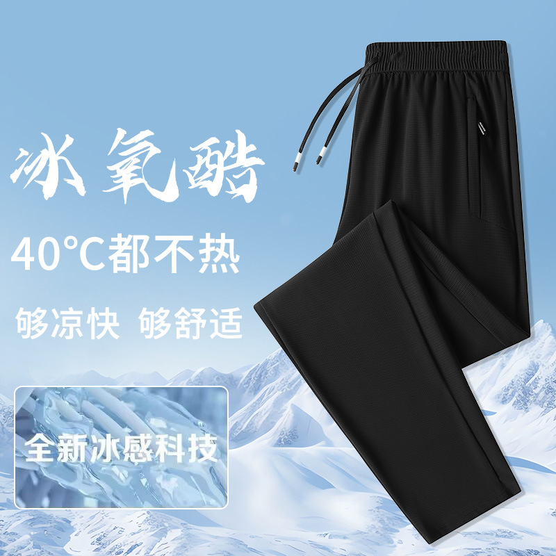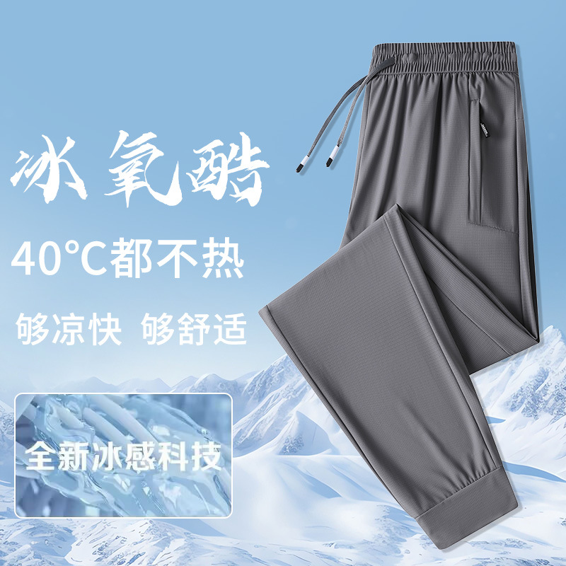 夏季新款冰丝休闲裤男薄款速干裤子男士高品质宽松工装束脚裤
