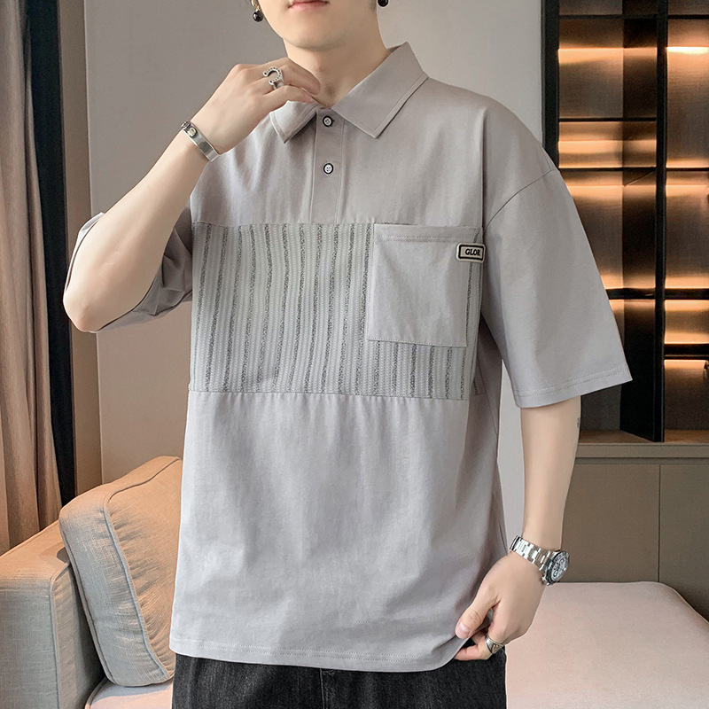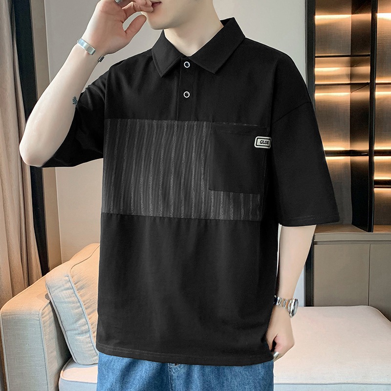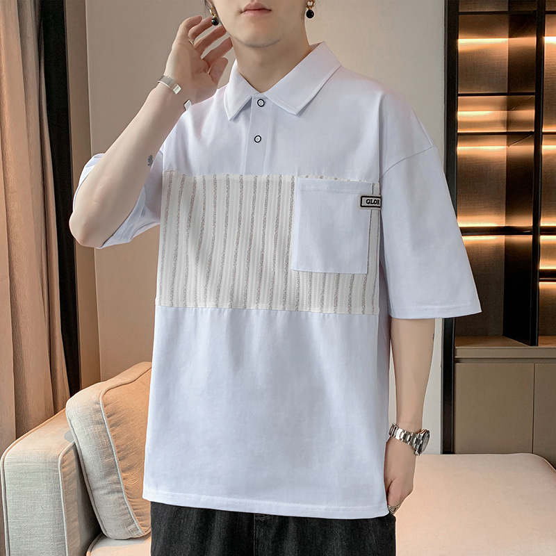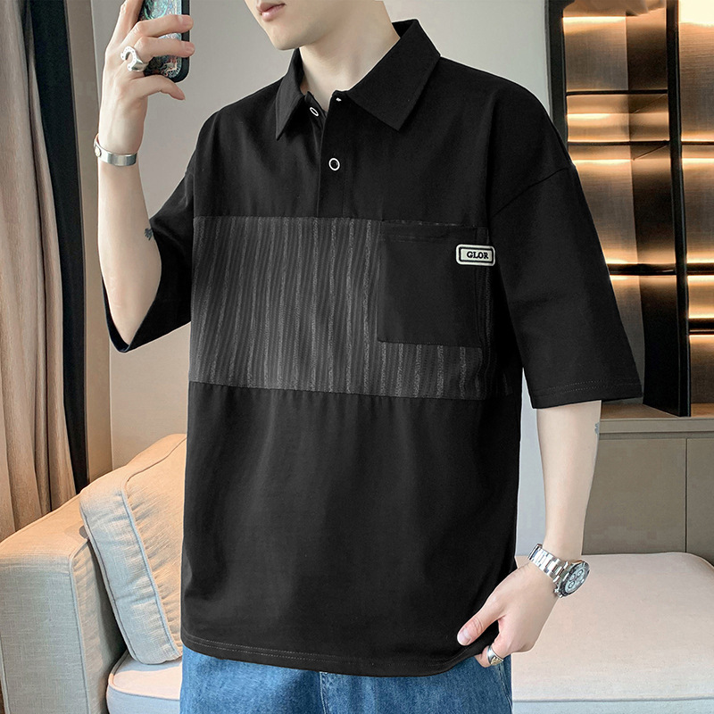 2025夏季撞色短袖上衣设计感叠穿Polo衫宽松上衣翻领polo衫时尚