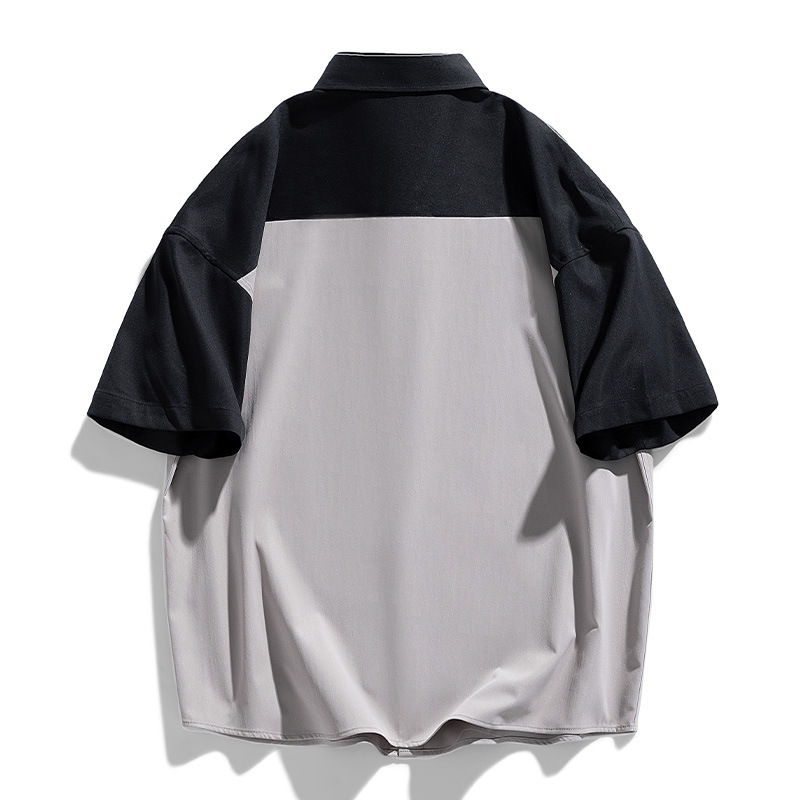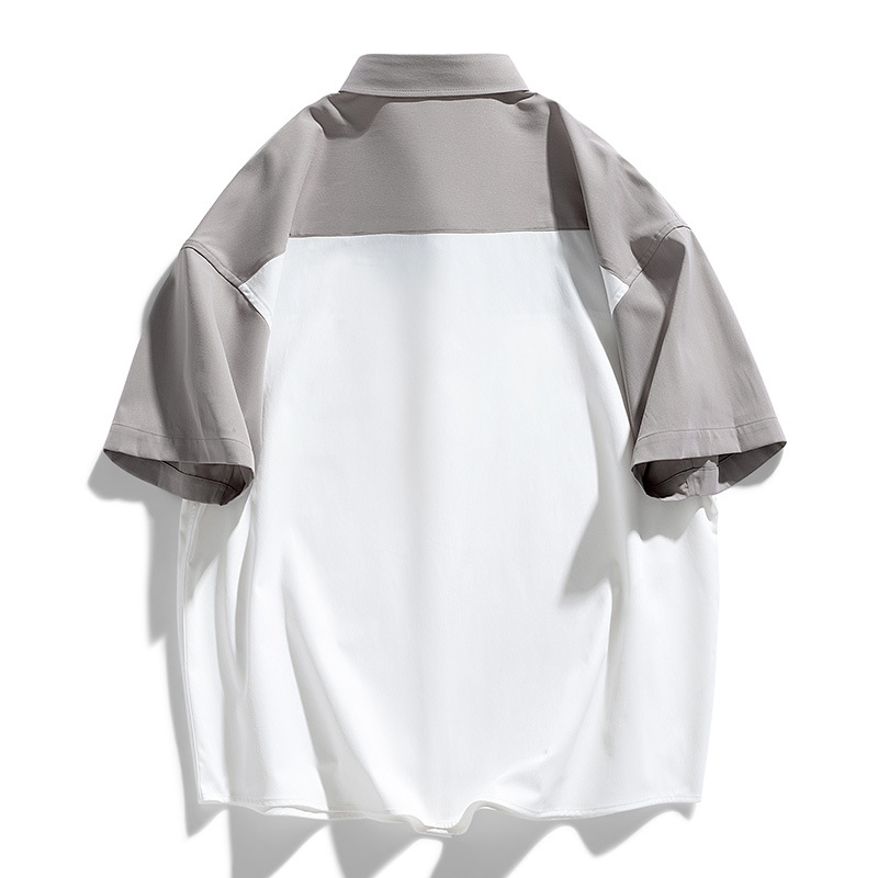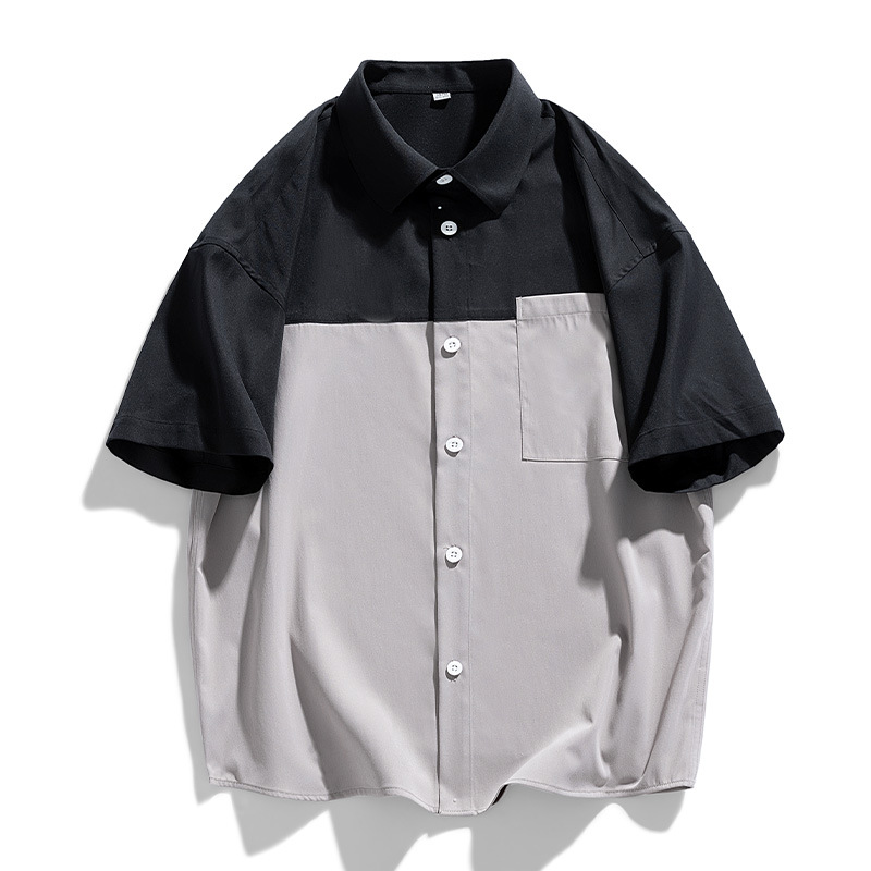 2025日系拼接短袖衬衫男士百搭休闲时尚休闲宽松上衣男装