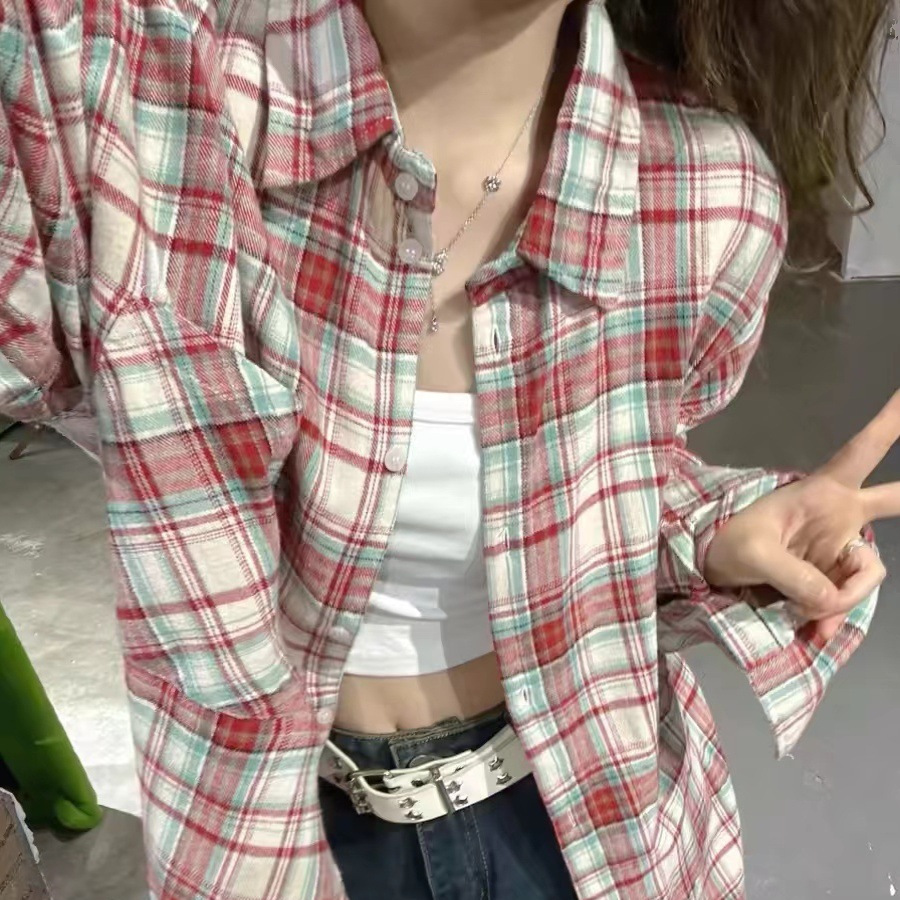 美式复古磨毛格纹长袖防晒衬衫男女休闲小众上衣痞帅衬衣外套