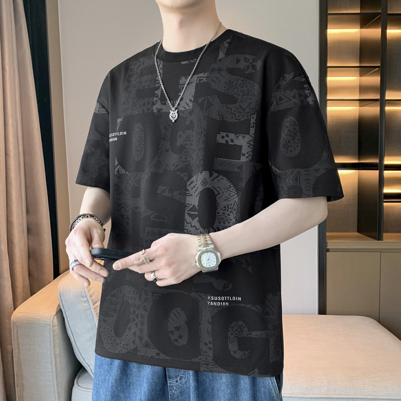 2025夏季新款港风格子印花大码短袖t恤男情侣宽松加肥加大上衣男
