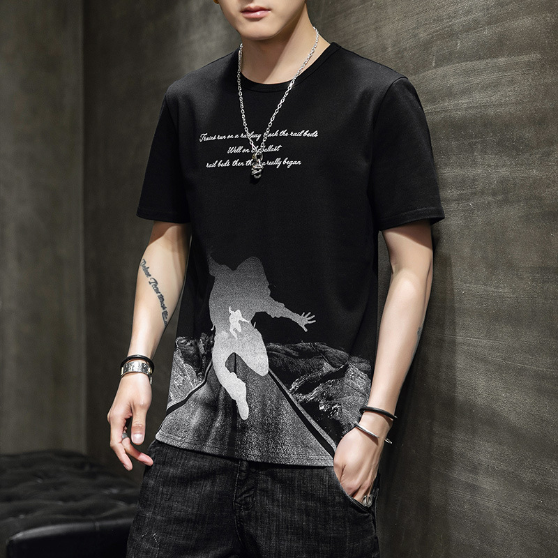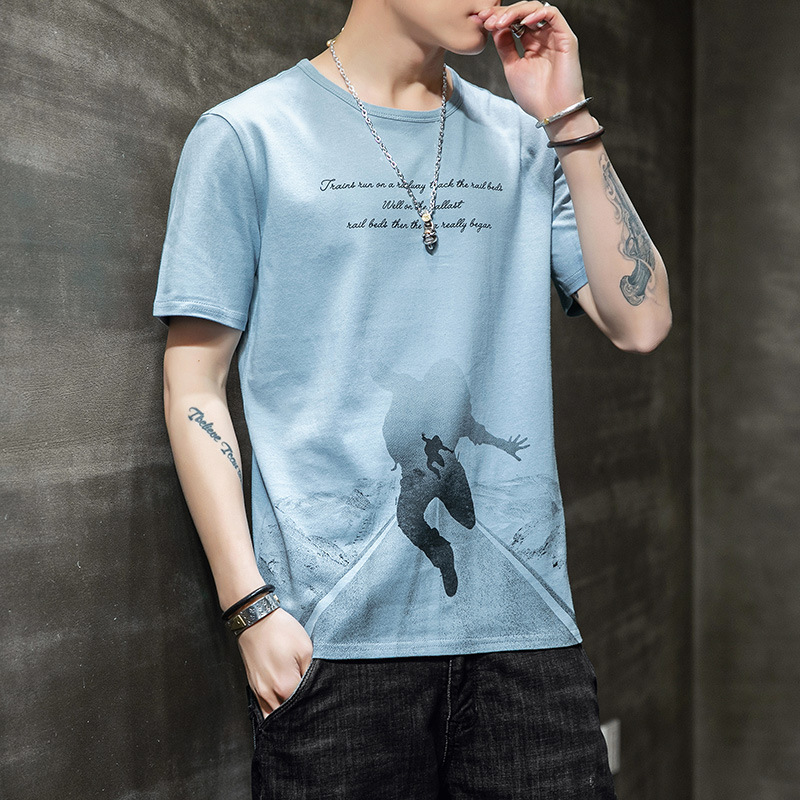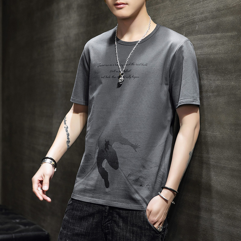 休闲短袖男薄款简约t恤新款宽松圆领夏季潮港风学生百搭五分袖