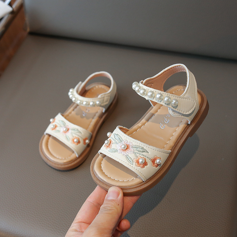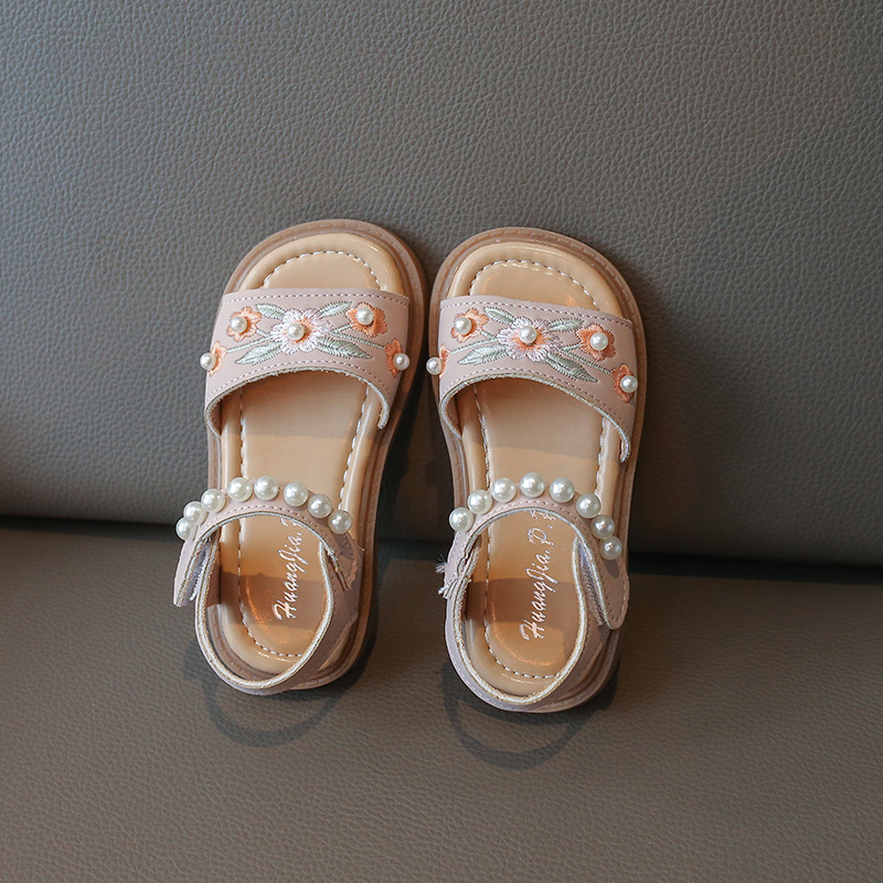 女童凉鞋夏季新款国风汉服刺绣公主鞋软底仙女风儿童鞋露趾沙滩鞋