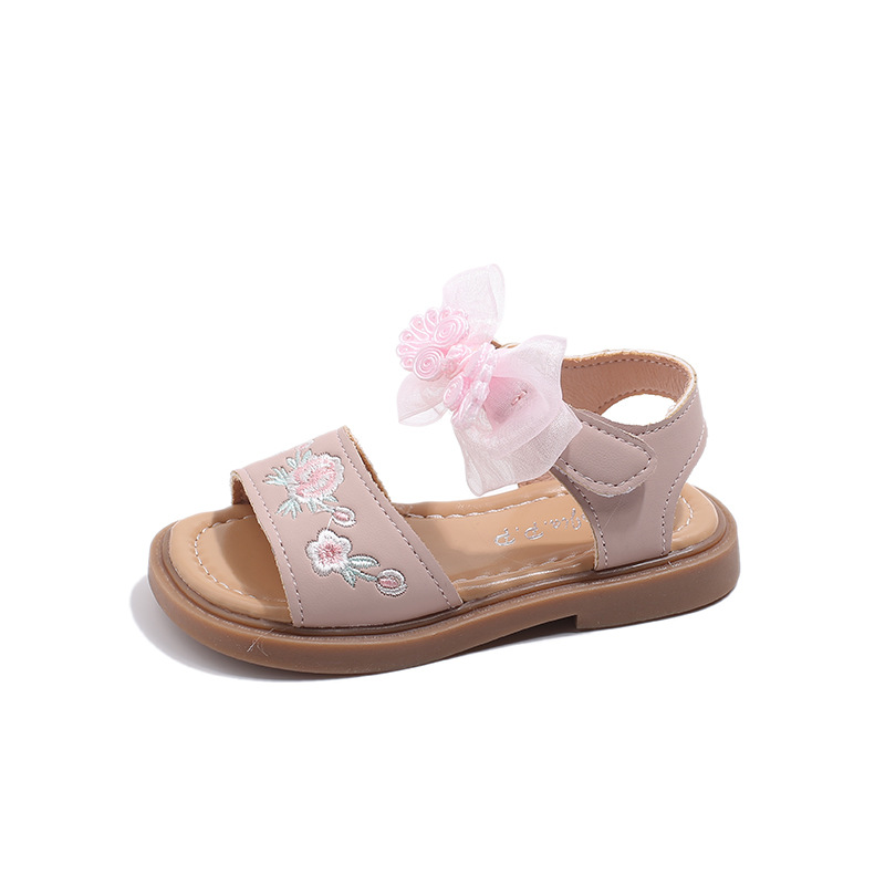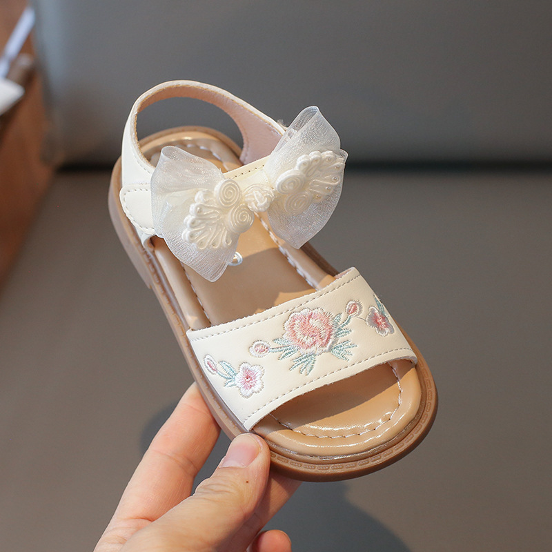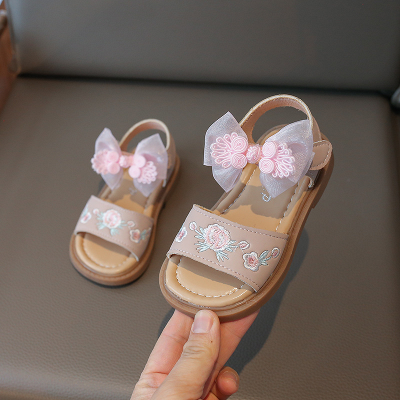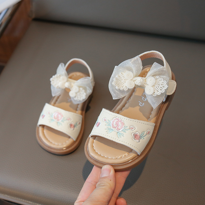 女童蝴蝶结公主凉鞋夏季新款儿童国风刺绣公主鞋民族风露趾沙滩鞋