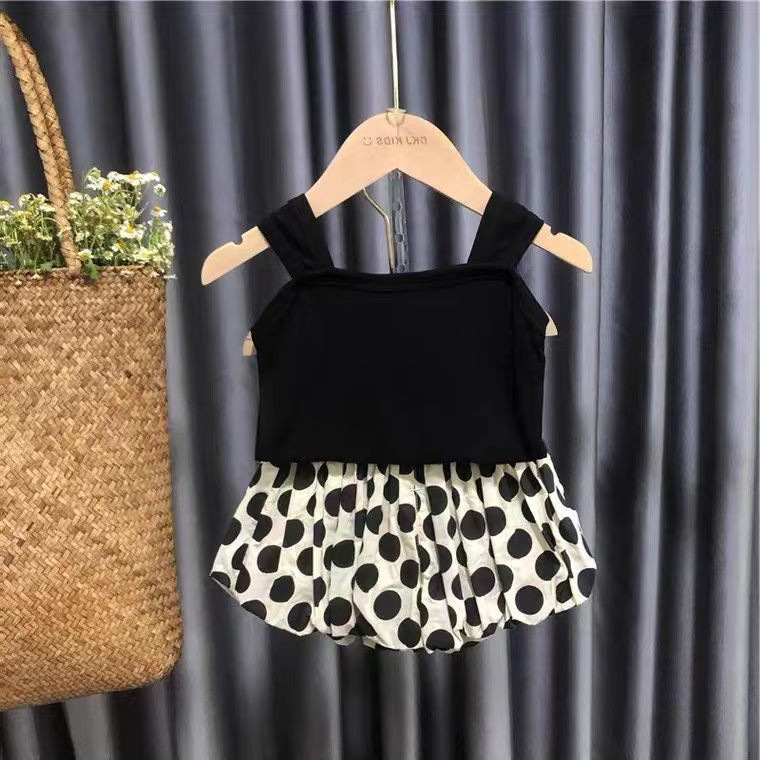 夏季女童套装宝宝洋气儿童个性潮牌韩版背心吊带格子波点花苞短裤