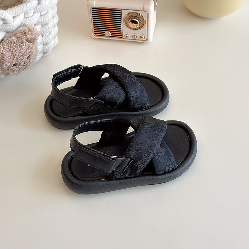 国潮风凉鞋女2025夏季新款搭扣平底女式露趾小香风罗马运动沙滩鞋