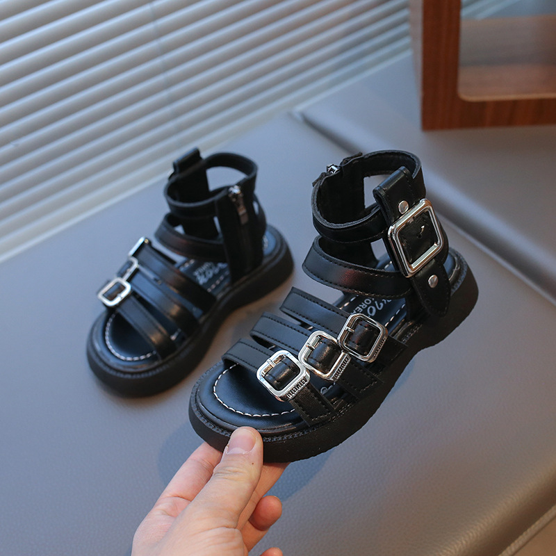 2025夏季儿童马丁凉靴时尚韩版高帮凉鞋女童露趾罗马鞋经典公主鞋