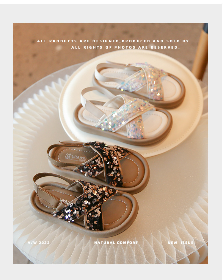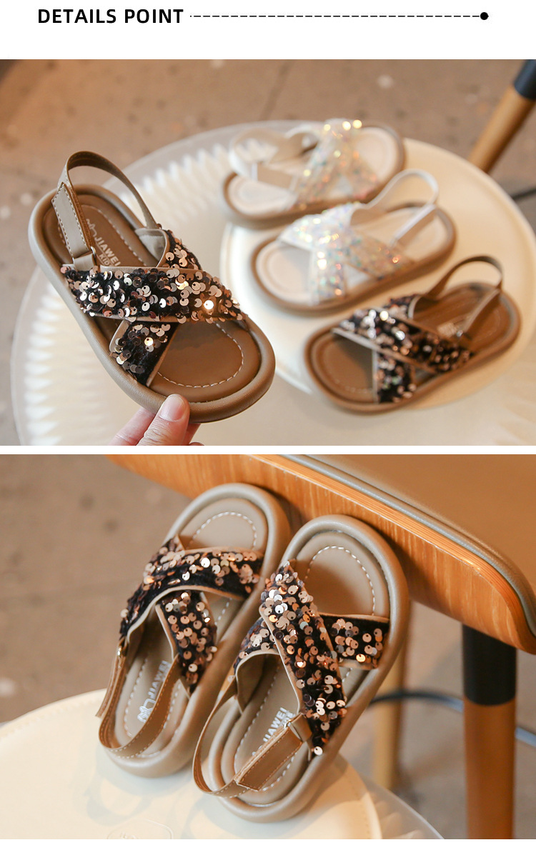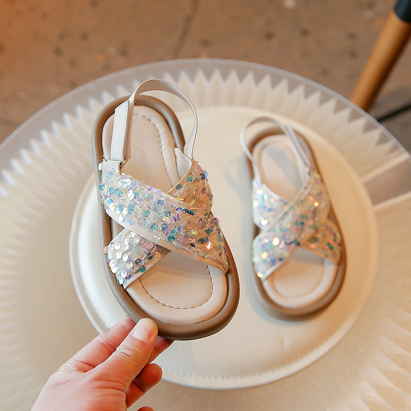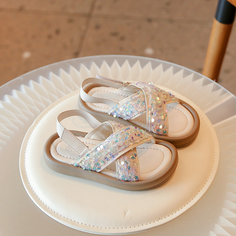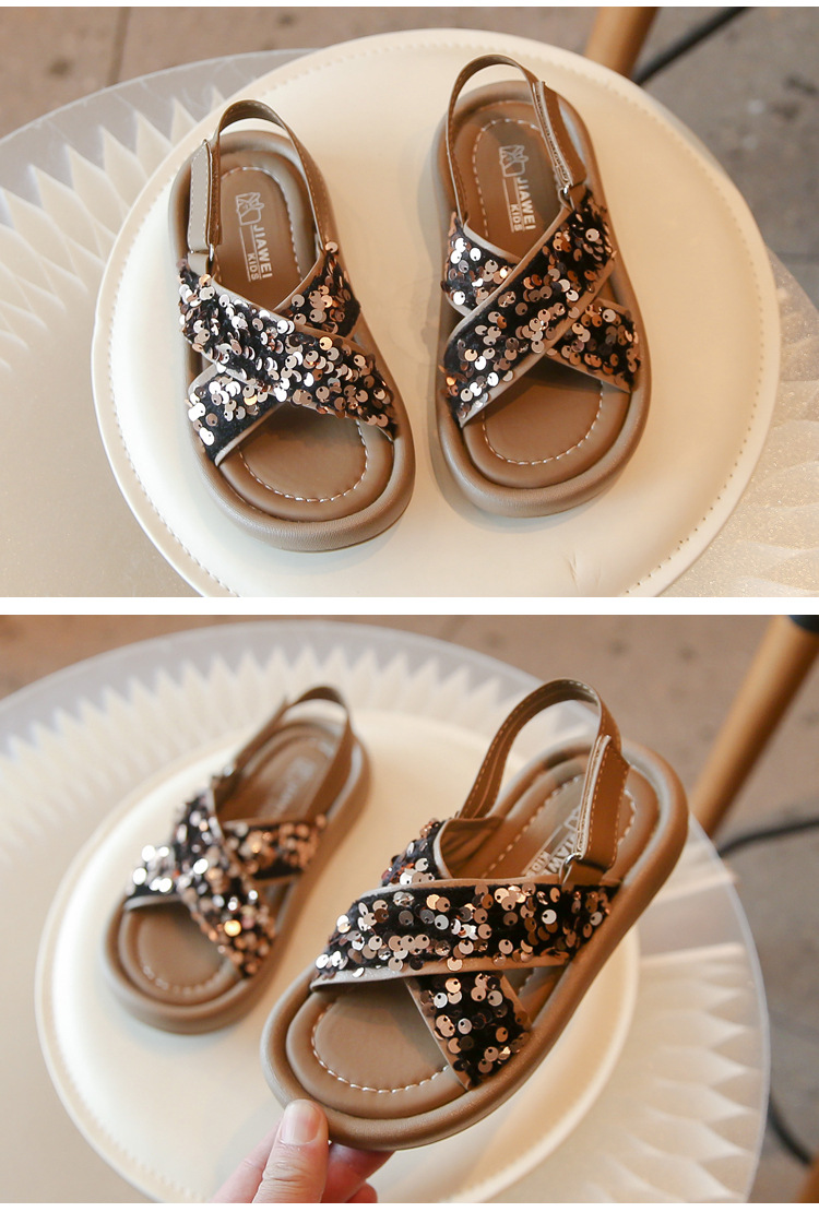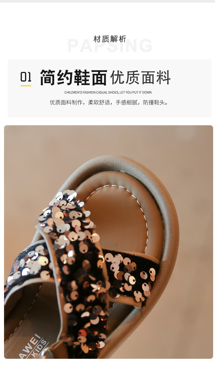 女童凉鞋春夏季网红时尚亮片露趾公主鞋罗马鞋中小童大童童鞋批发