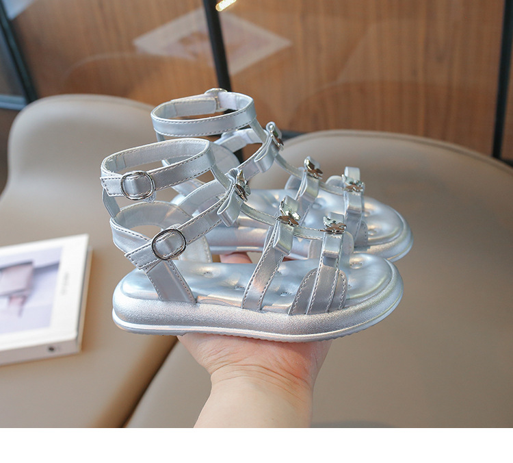 女童鞋子儿童公主罗马鞋2025夏季新款洋气女孩大童蝴蝶结软底凉鞋