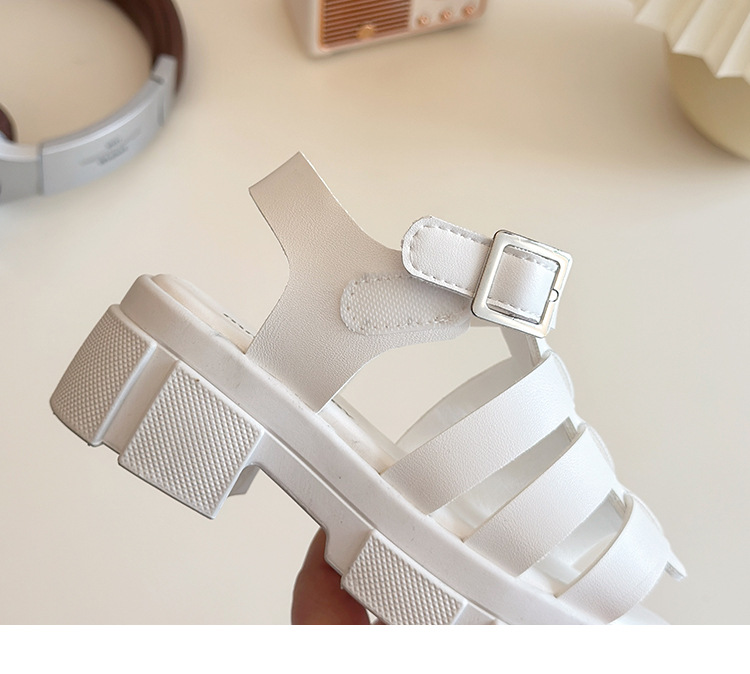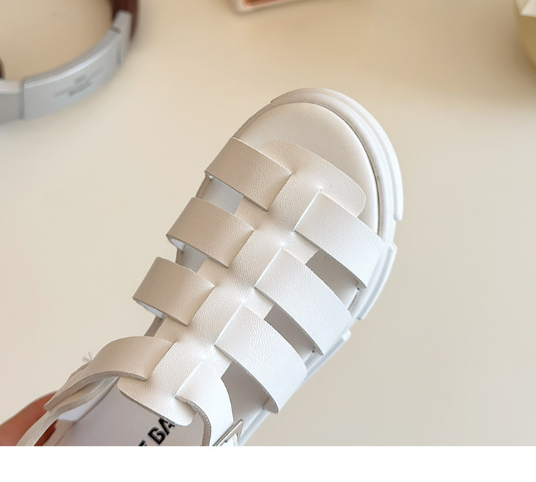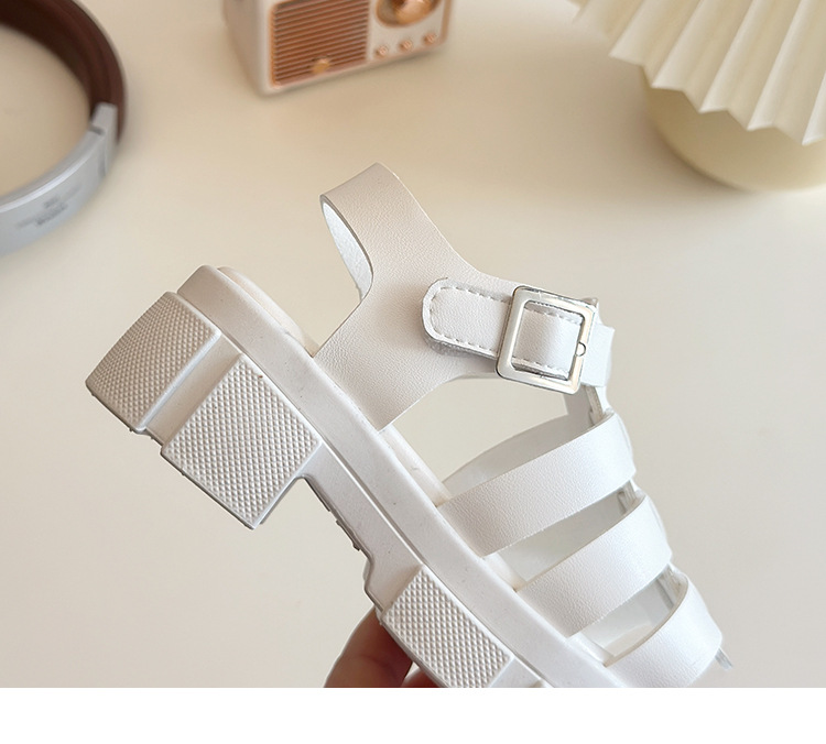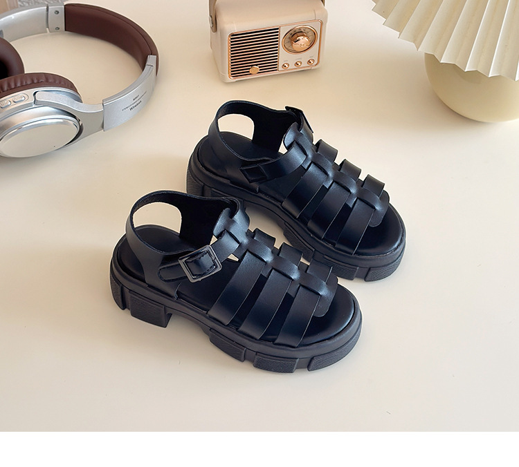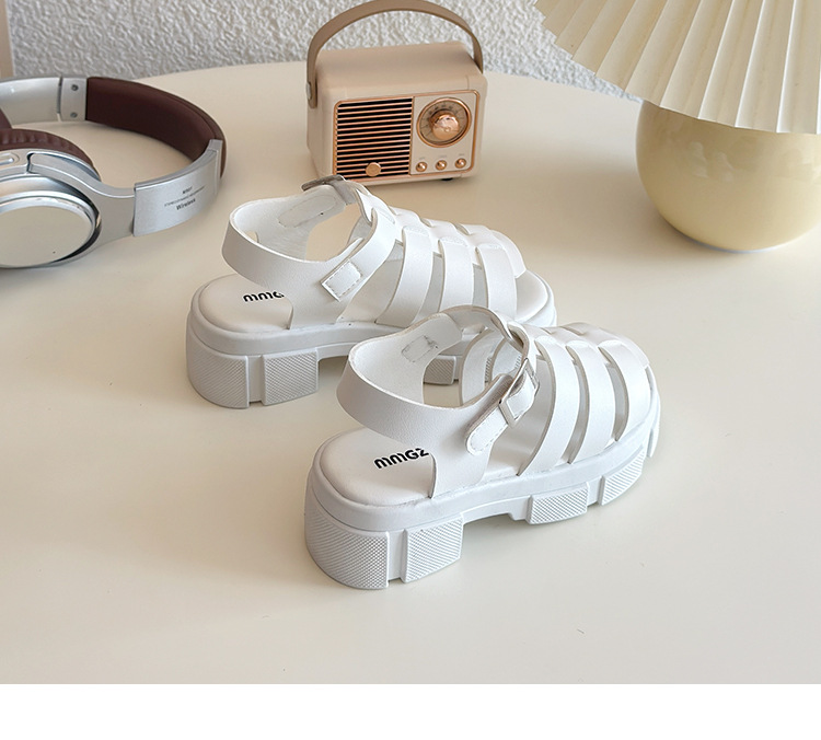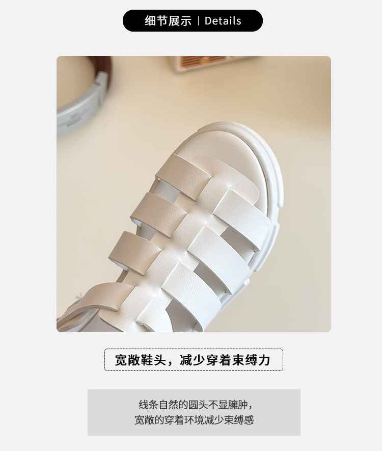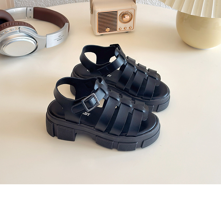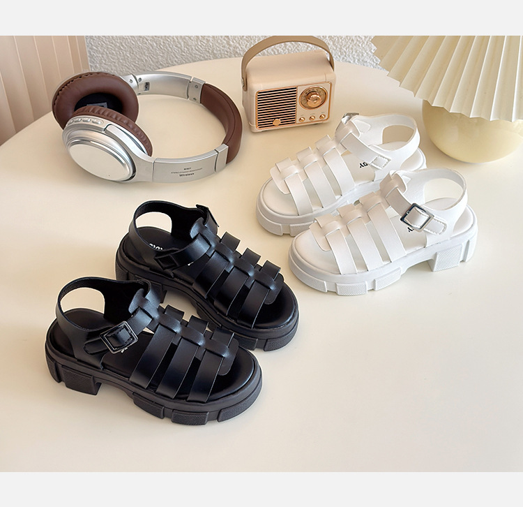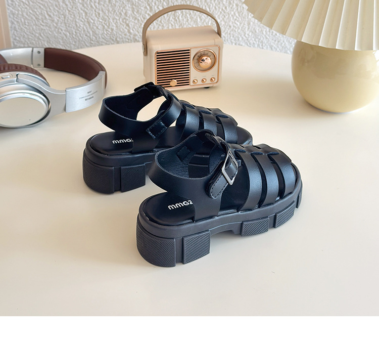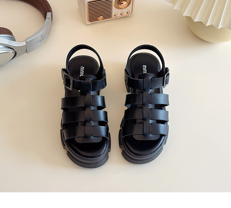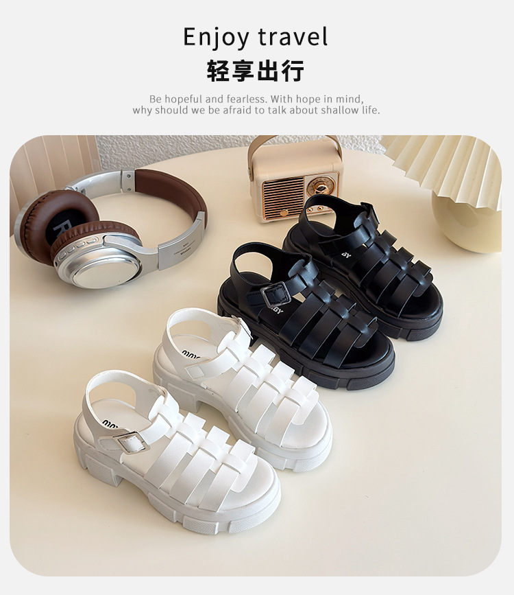 2025欧美松糕底绑带厚底一字中跟凉鞋休闲夏季粗跟软底百搭凉鞋女