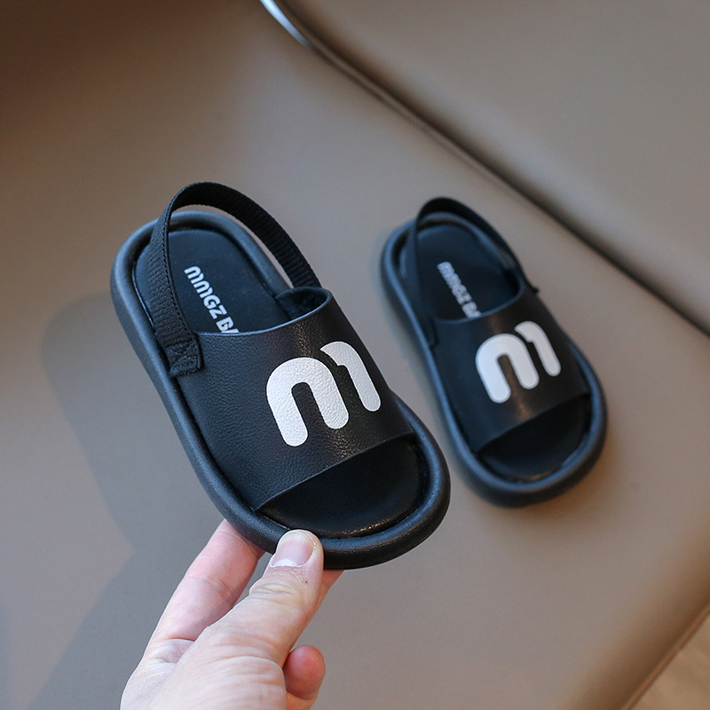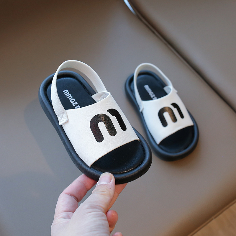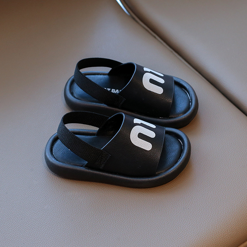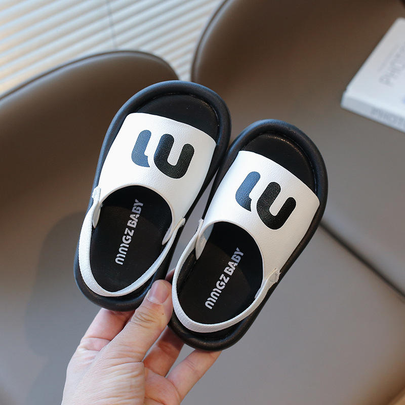 女童2025夏季新款中小童时尚字母软底凉鞋男宝宝百搭一脚蹬沙滩鞋