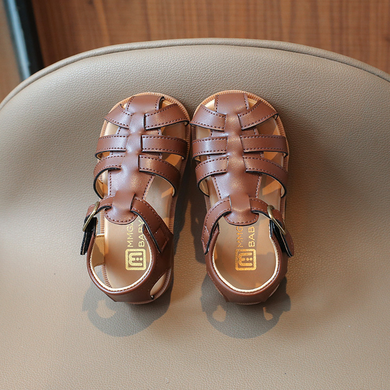 女童包头凉鞋童鞋韩版儿童舒适学步鞋编织镂空男宝宝魔术贴罗马鞋